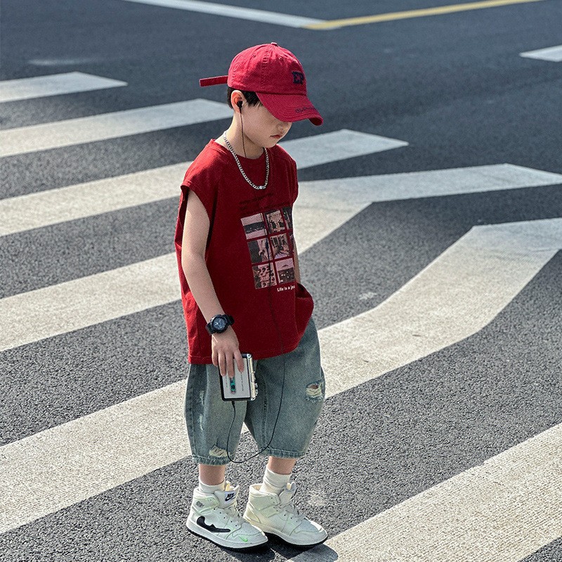 夏季新款大男童背心童装儿童男孩无袖背心上衣个性潮时尚