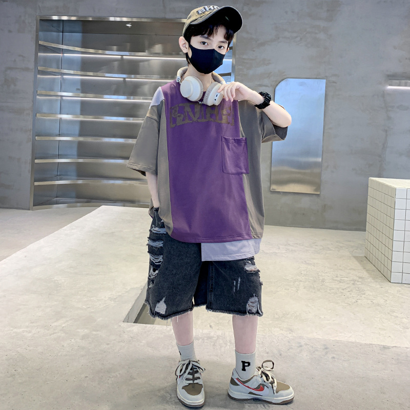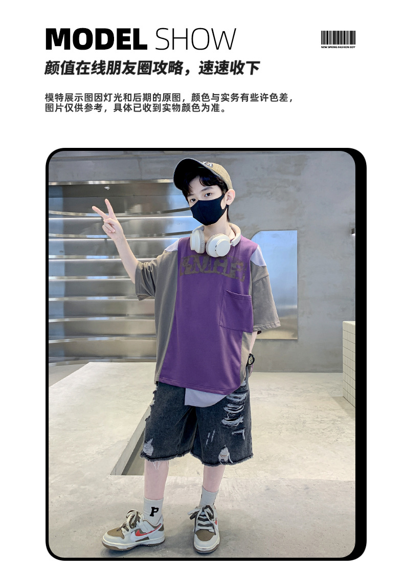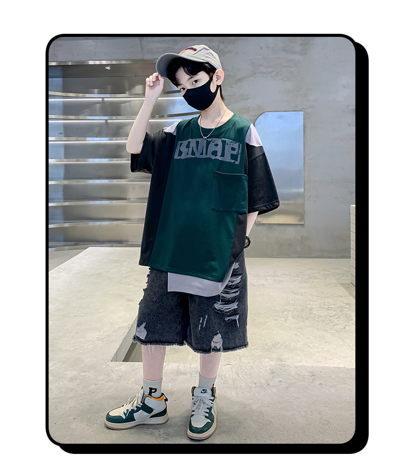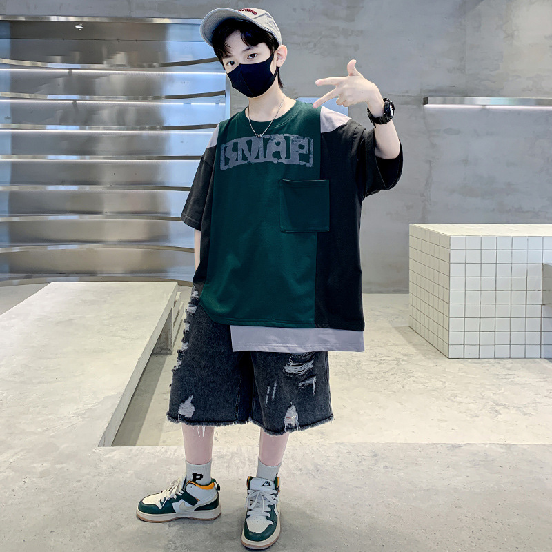 夏季中大男童不规则短袖T恤新款童装儿童男孩拼色t个性酷痞帅上衣