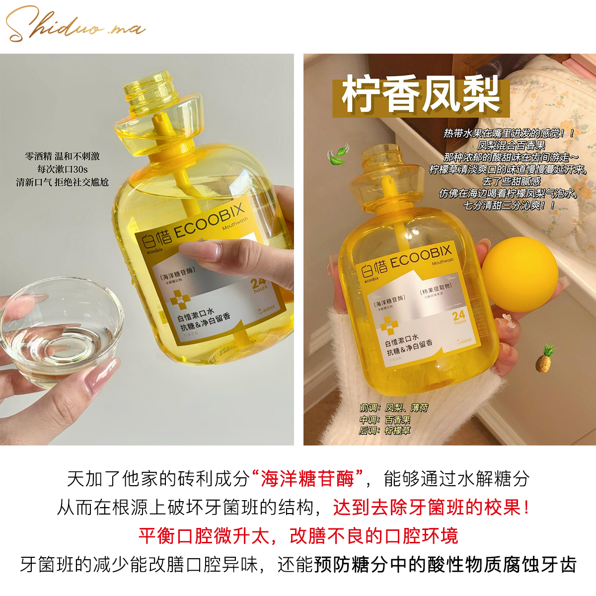 白惜抗糖瓶装漱口水留香护龈抑菌防蛀牙清新口气410ml