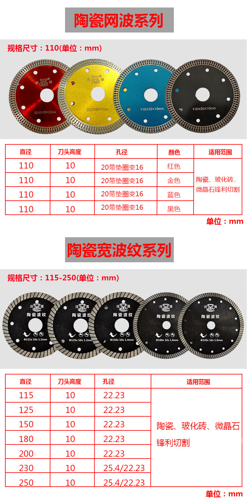 110红色网波陶瓷砖锯片