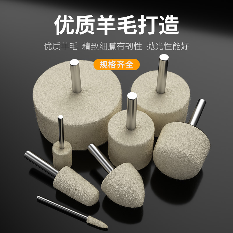 羊毛磨头抛光轮镜面抛光打磨神器玉石打磨头羊毛轮抛光头刷头圆柱