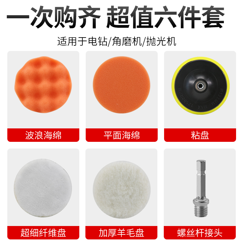 - ✅【3寸M10六件套】打蜡抛光全能套装
