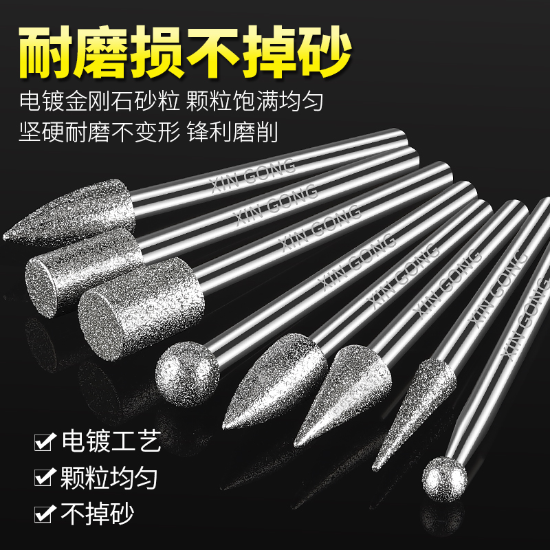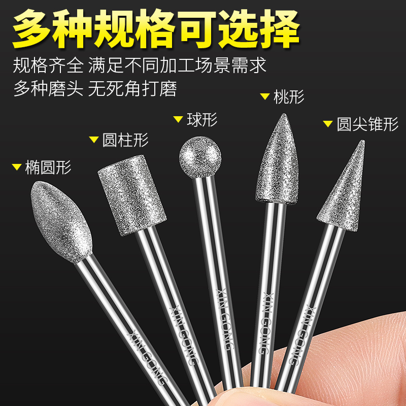 金刚石磨头3mm小型金刚砂打磨头工具金属翡翠玉石抛光电动内磨头