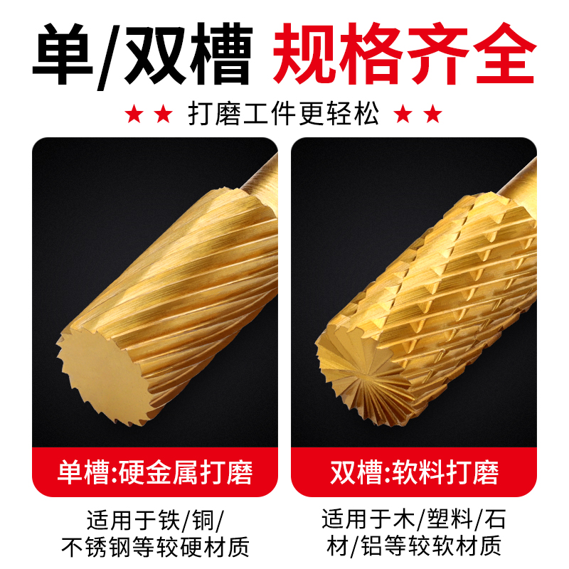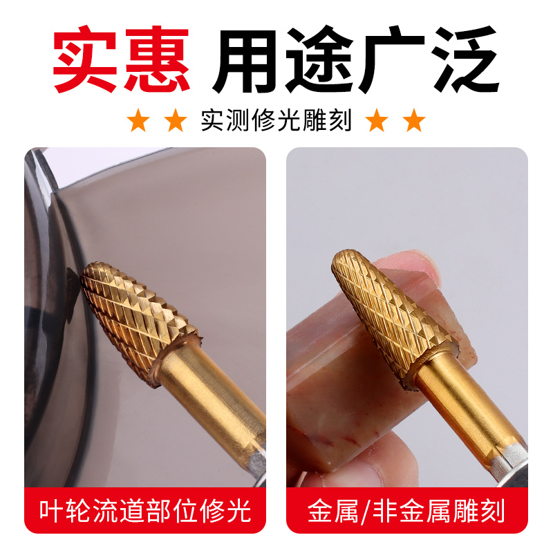 镀钛钨钢旋转锉硬质合金铣刀扩孔钻头内磨头不锈钢铁电动打磨工具