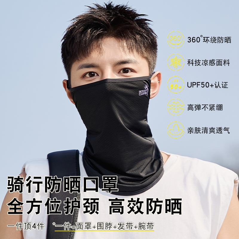 骑行防晒面罩男夏季防紫外线冰丝透气全脸头套帽子一体护颈围脖套