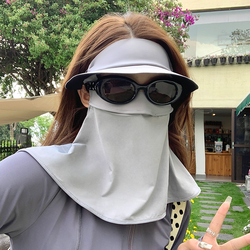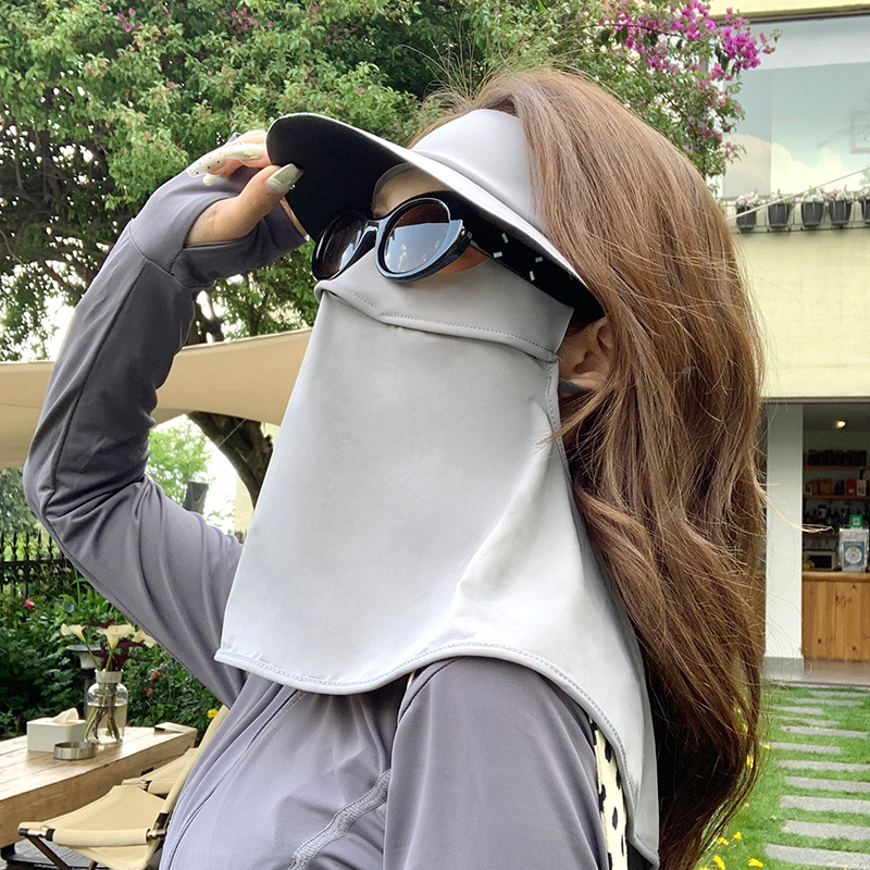 全脸遮阳骑行防晒面罩黑胶帽子一体护颈防紫外线女脸基尼夏季冰丝