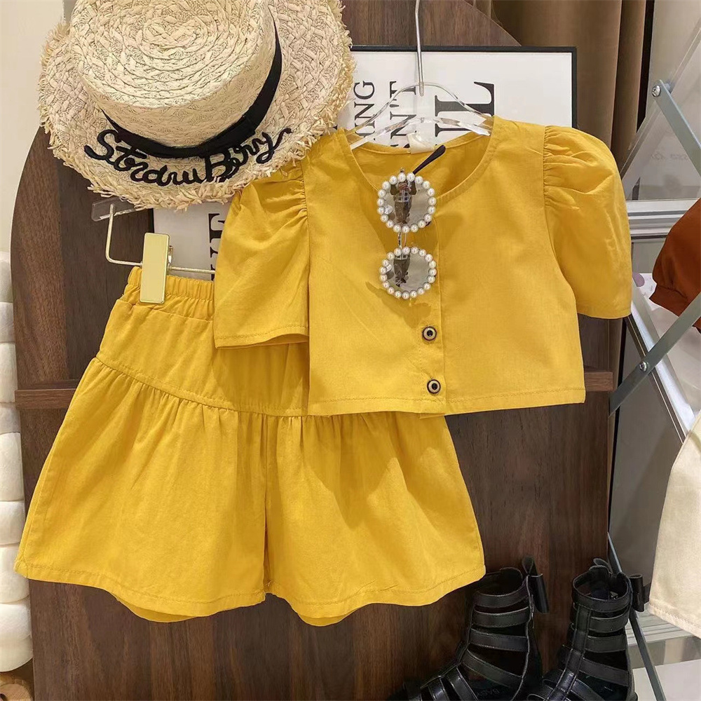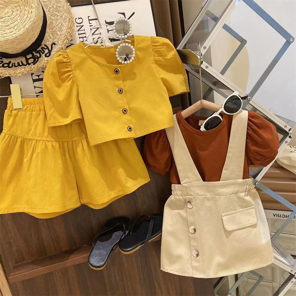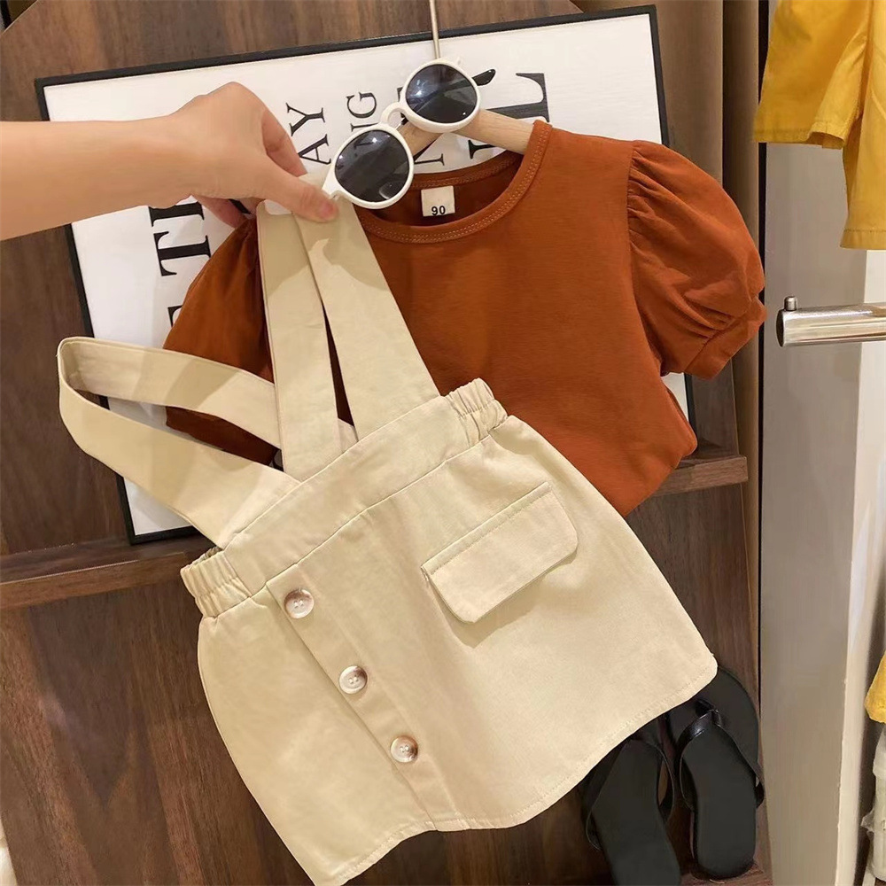 新品清凉一夏女童双版本泡泡袖打底衫短裙两件套2025夏装套装潮