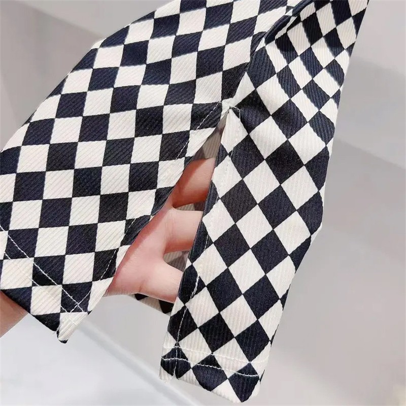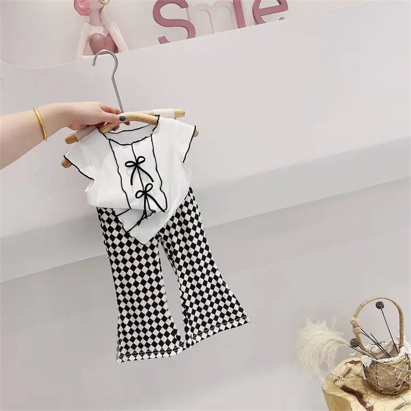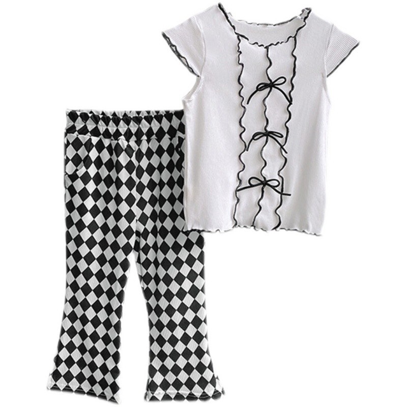 女童时髦套装2025夏季新款韩版儿童小香风上衣+格子喇叭裤两件套