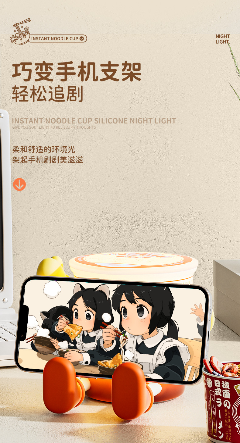 泡面杯小夜灯 女生情人节礼物创意摆件充电床头喂奶硅胶拍拍灯