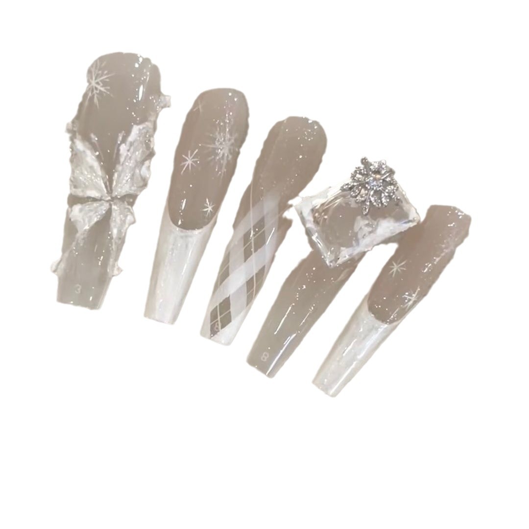 纯手工穿戴甲初雪冰露晨蝶显白蝴蝶气质高级感猫眼可拆卸美甲贴片