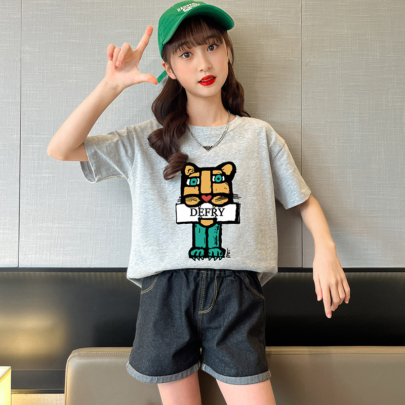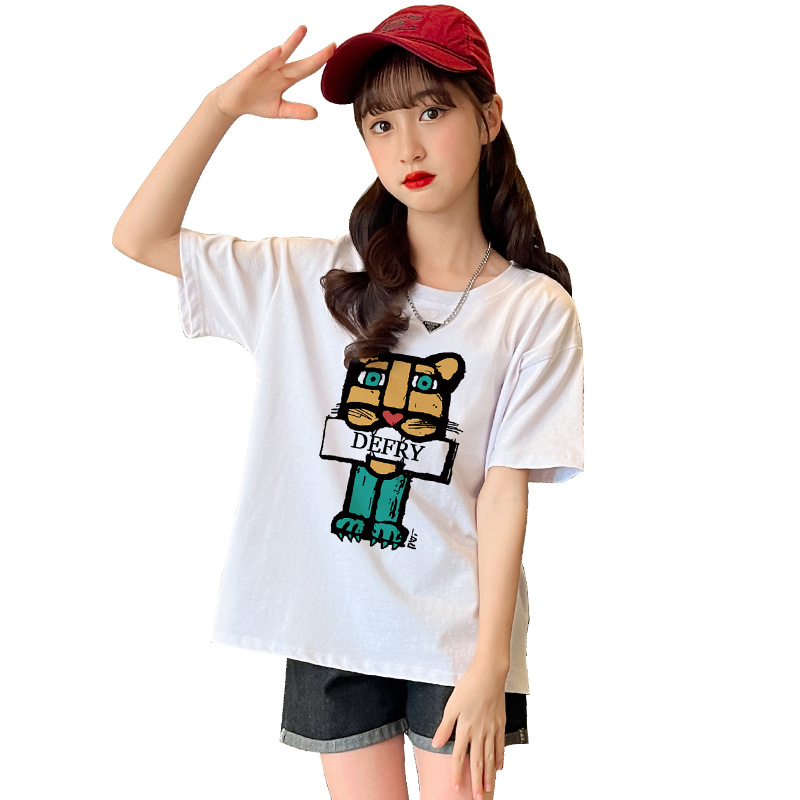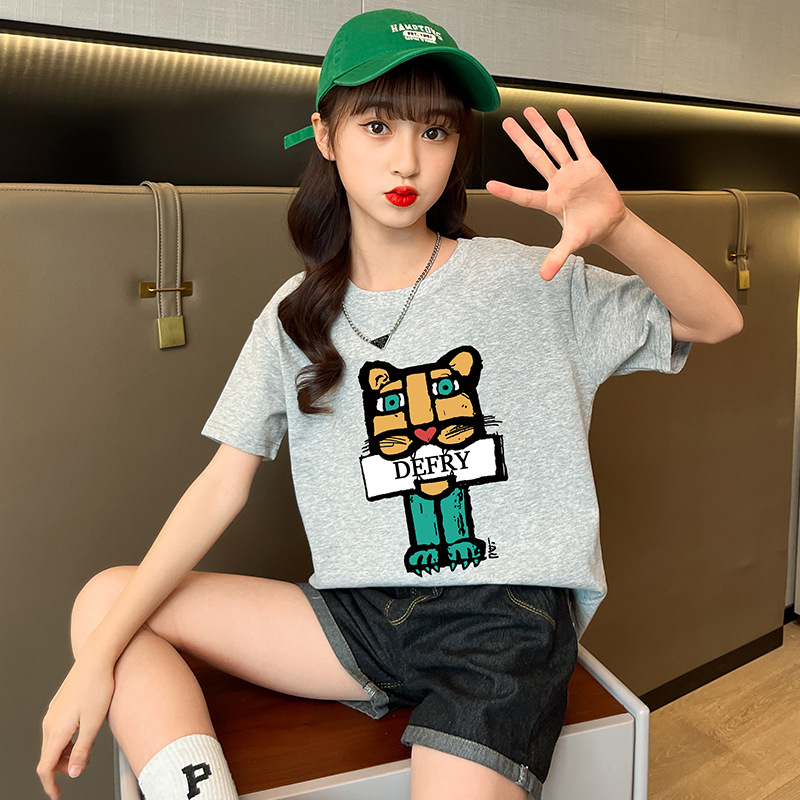 女童t恤纯棉短袖新款夏季洋气半袖t宽松卡通印花女孩上衣儿童装潮