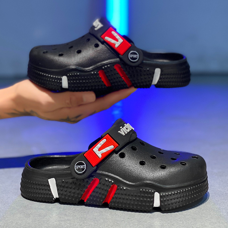 夏季儿童洞洞鞋男童防滑耐磨小孩居家拖鞋外穿沙滩包头凉鞋中大童