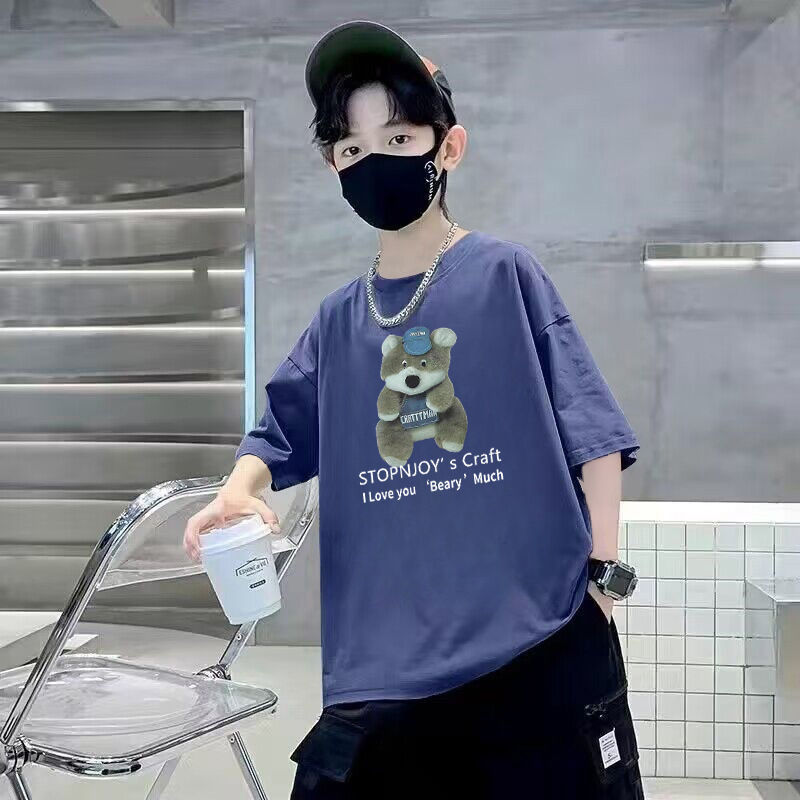 男童短袖棉质t恤夏季新款透气吸汗宽松帅气卡通中大童半袖儿童潮