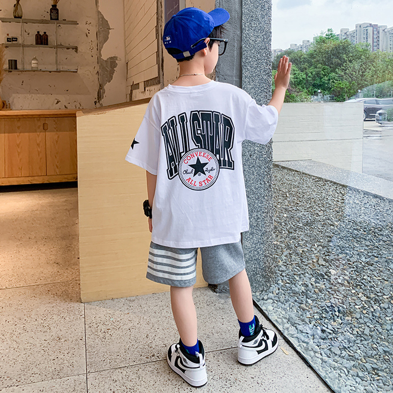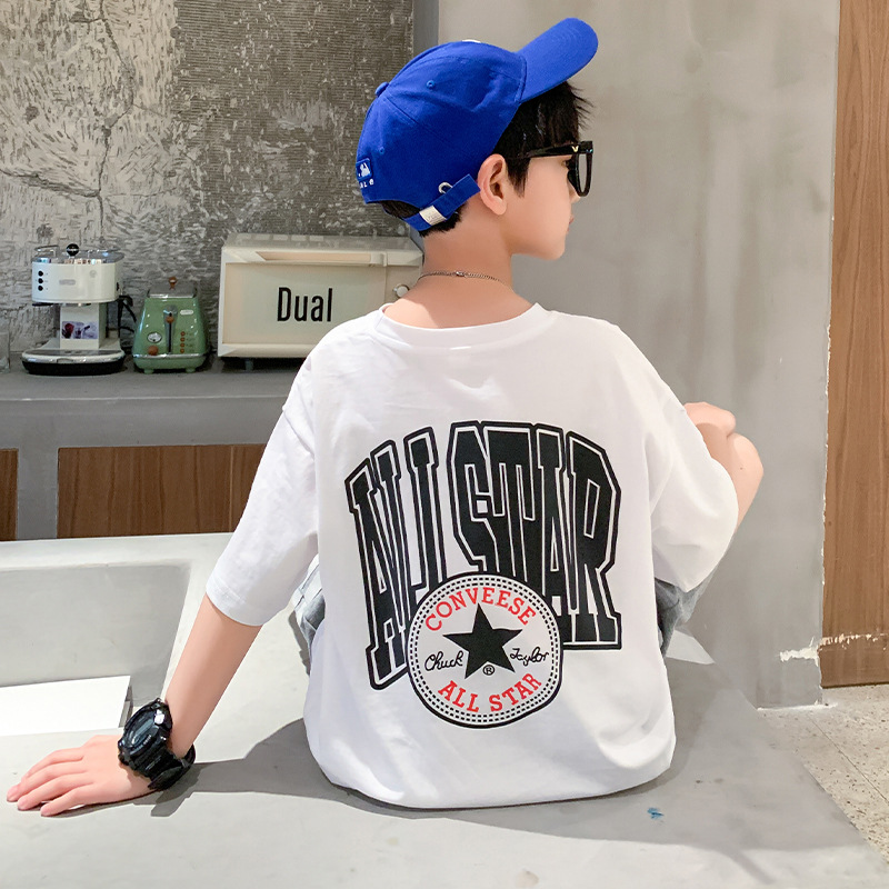 童装男童夏装短袖T恤新款宽松卡通印花儿童男孩夏季潮服大童帅气