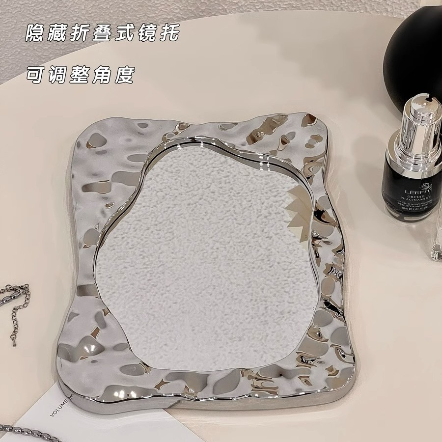 镜子化妆镜台式桌面宿舍家用便携ins风网红高级感美妆公主梳妆镜