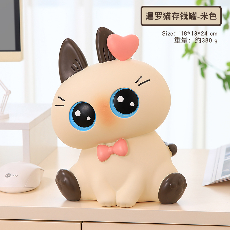 创意暹罗豆豆猫可爱存钱罐网红卡通防摔储蓄罐塘胶桌面装饰品钱罐
