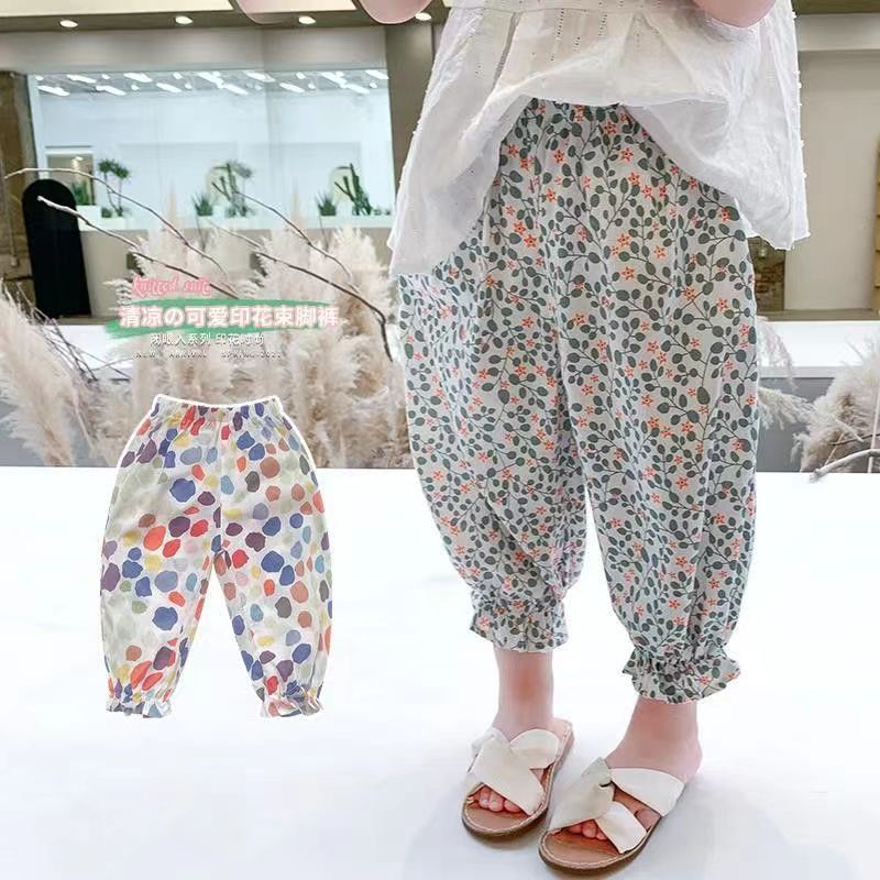 印碎花休闲裤女童夏装复古中高腰宽松收口百搭防蚊空调裤韩版新款