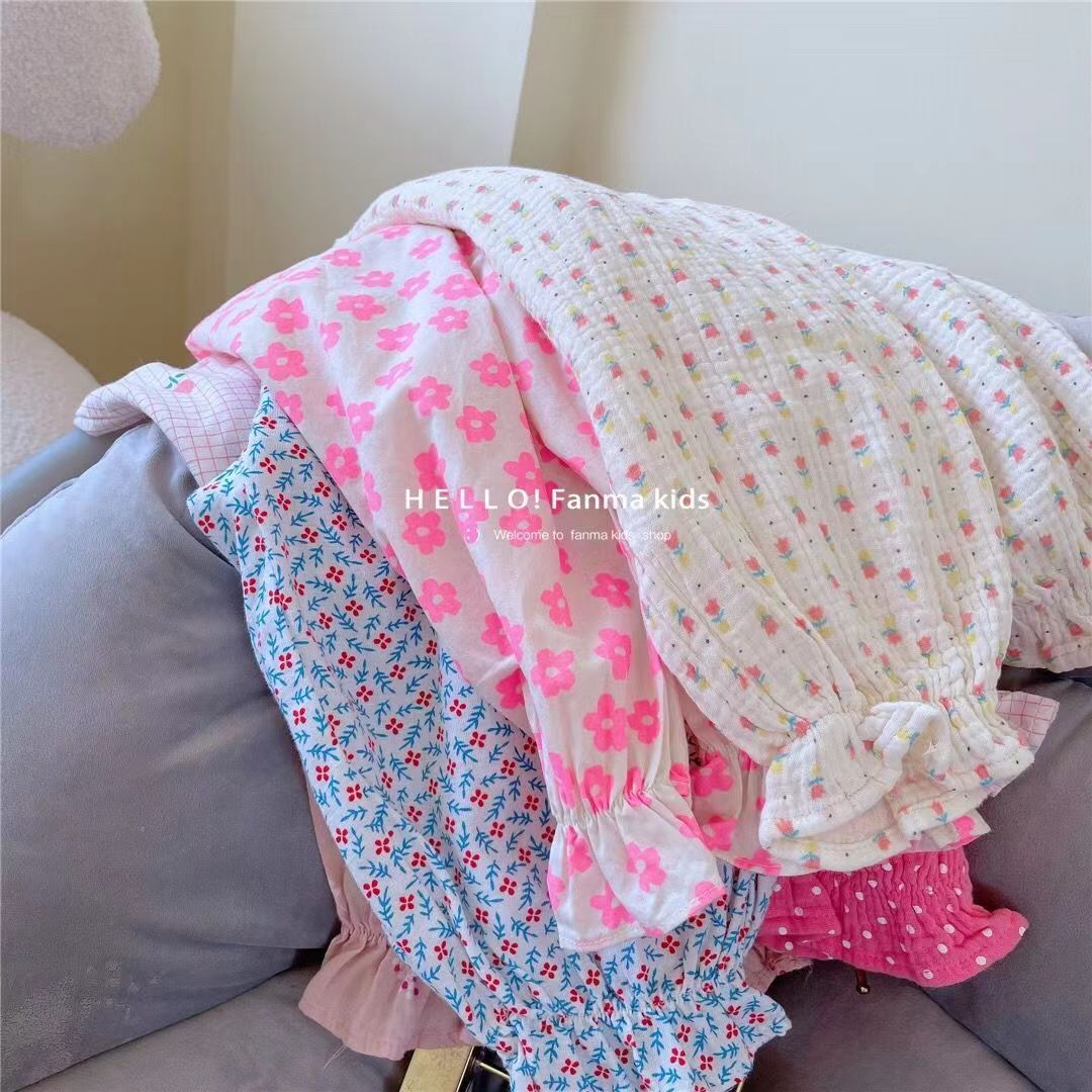 女童度假防晒裤儿童复古碎花夏百搭防蚊裤夏装印花中高腰沙滩裤透