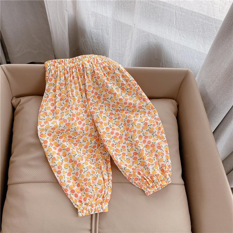 沙滩裤儿童复古碎花裤夏季防晒裤百搭防蚊裤女童夏装印花中高腰