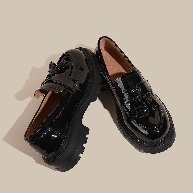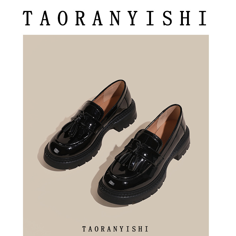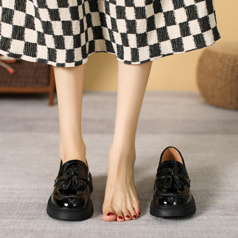 英伦风皮鞋女新款流苏学院风漆皮复古单鞋女乐福鞋 大码女鞋