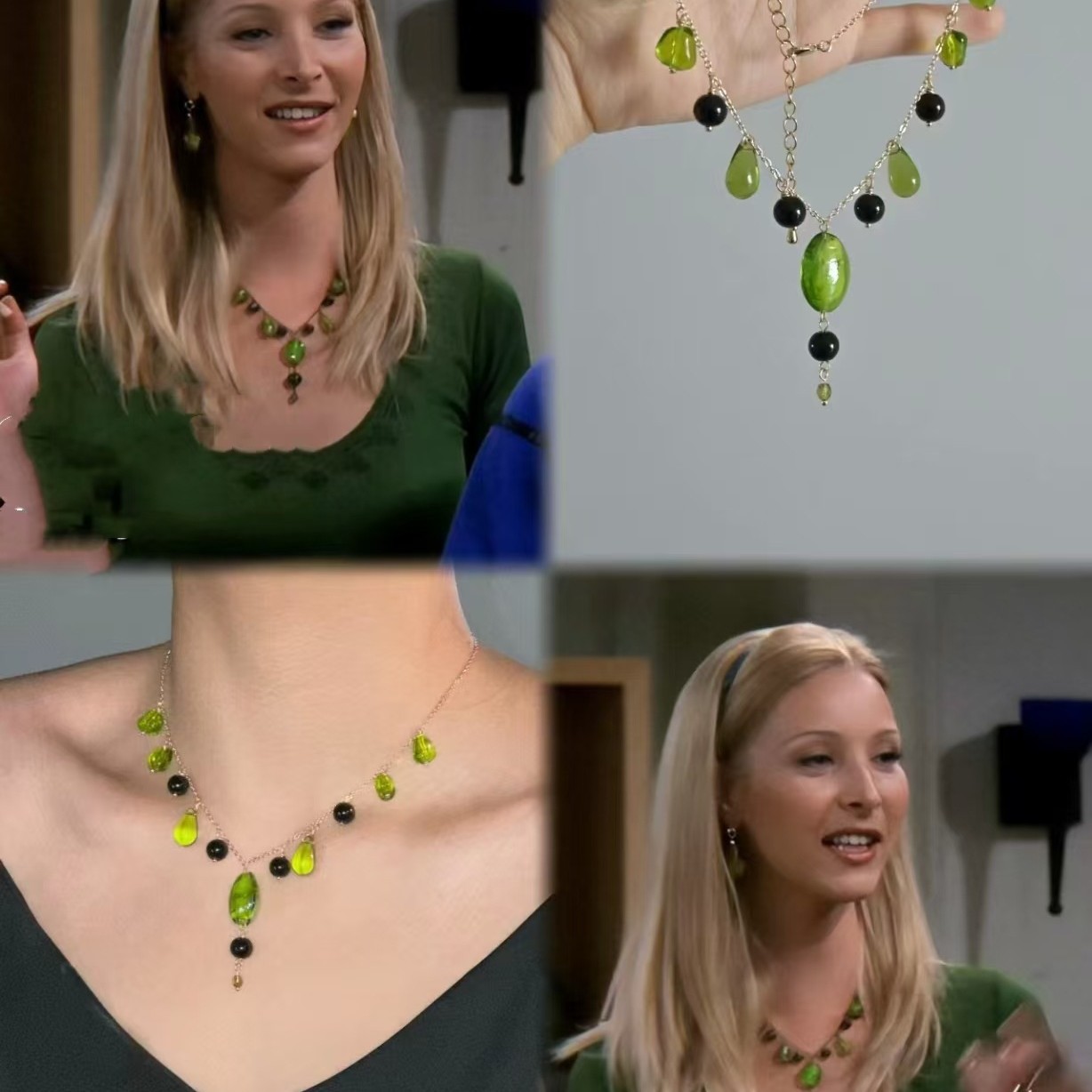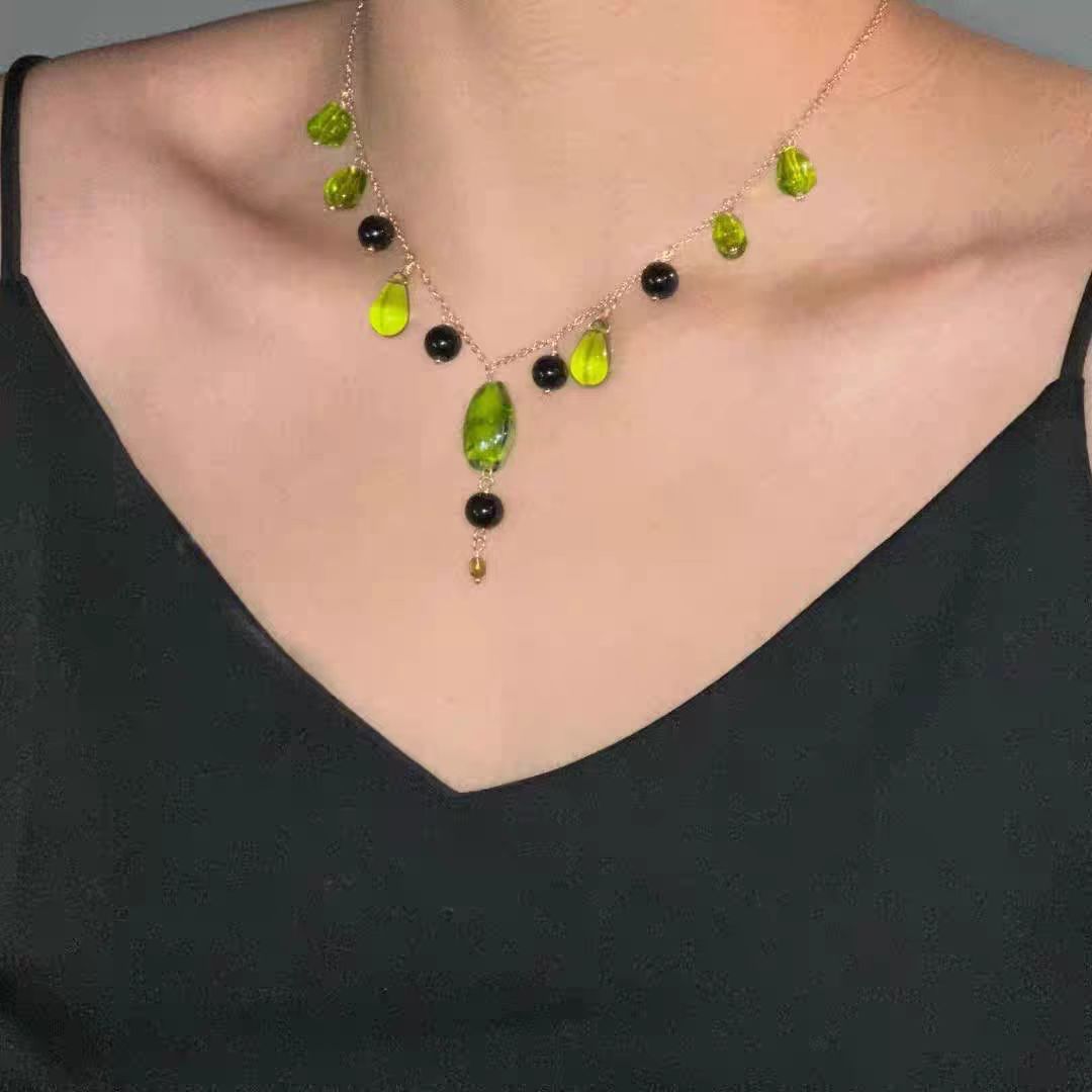 忘青手作晶莹剔透的青提葡萄老友记菲比同款森系荧光绿琉璃珠项链