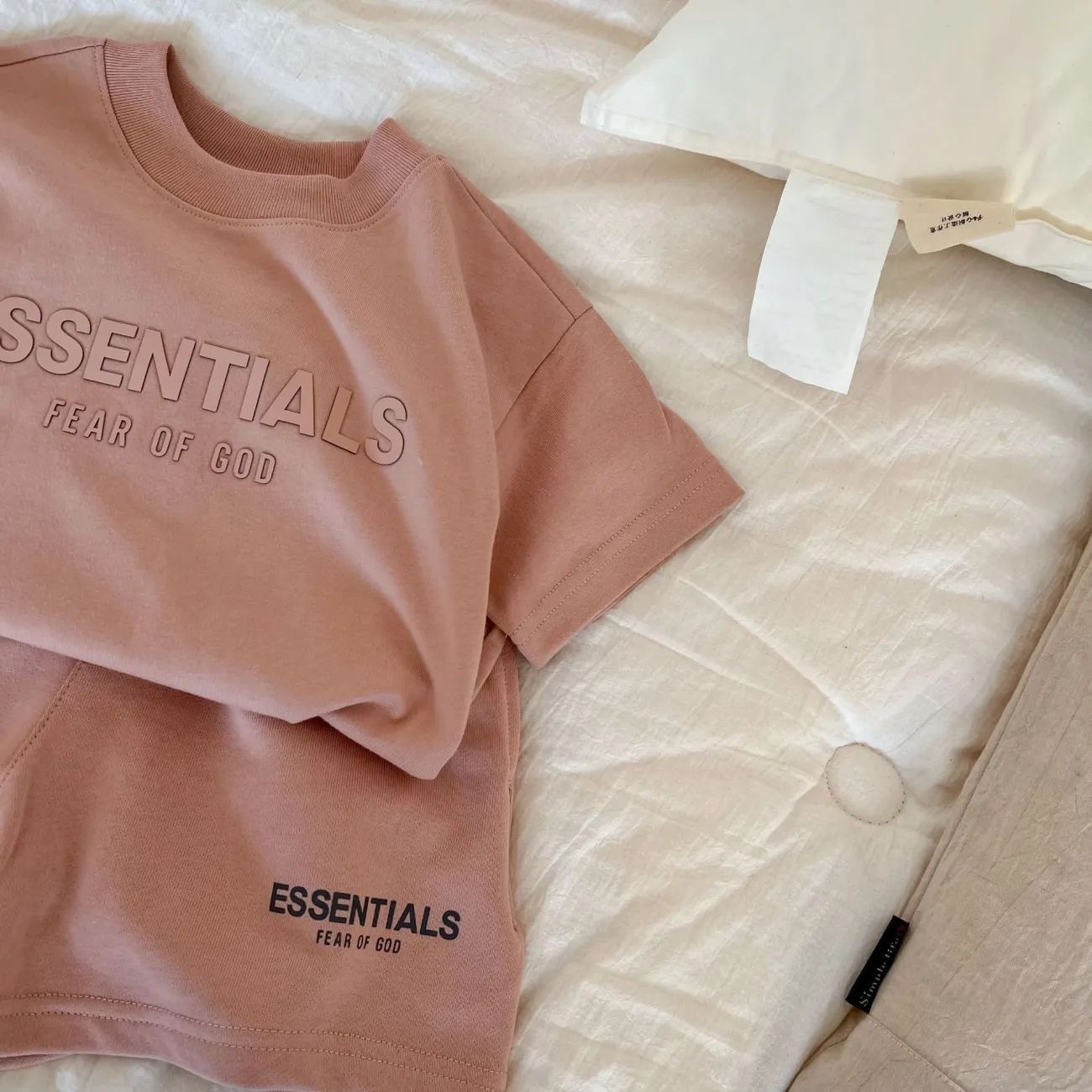 凹凸字母儿童运动套装夏新款男女童短袖t恤宝宝休闲短裤时髦两件