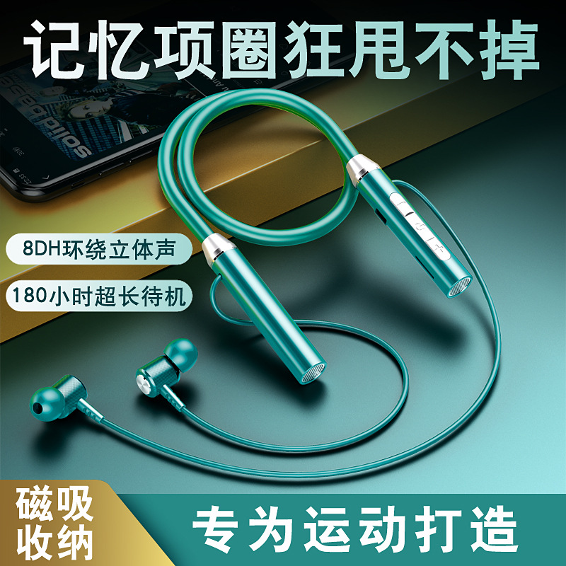 跨境新款挂脖蓝牙耳机双耳磁吸运动无线耳机颈挂式大电池带插卡