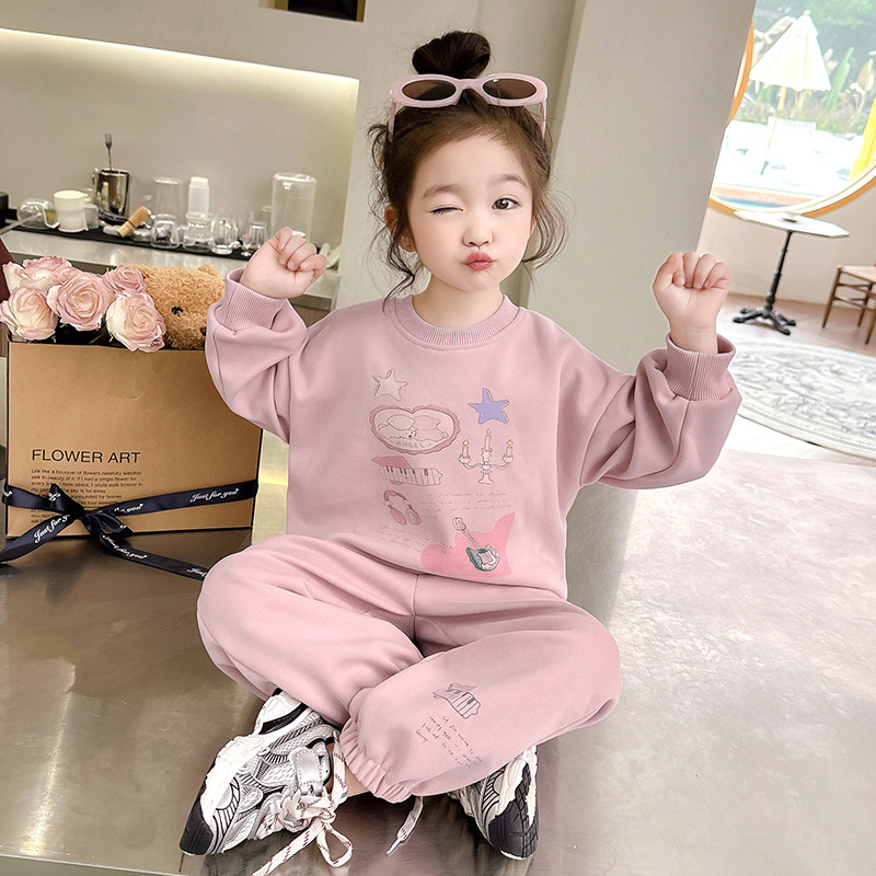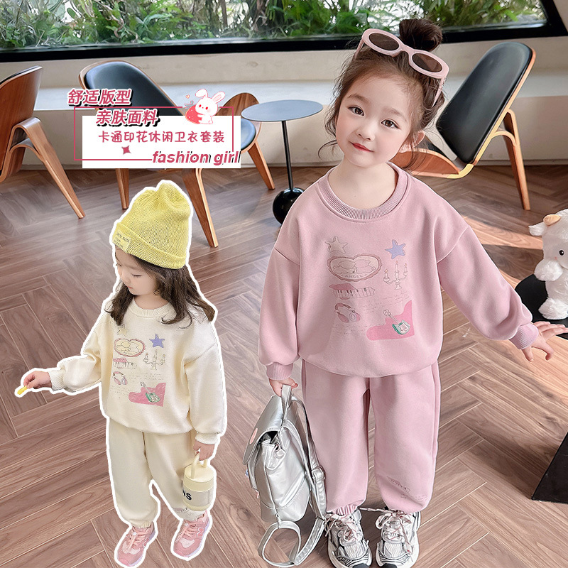 中小童套装韩版春秋女童新款宝宝洋气儿童卫衣休闲两件套童装