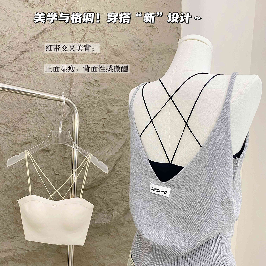 抹胸内衣女新款细肩吊带交叉美背文胸一体薄杯透气运动背心裹胸罩
