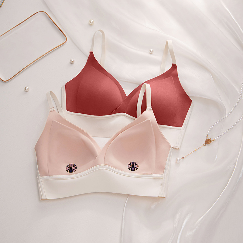 无痕法式三角杯时尚撞色性感文胸无钢圈透气薄款小胸聚拢少女内衣