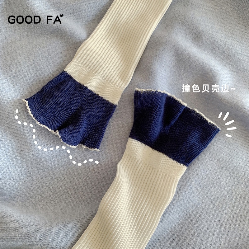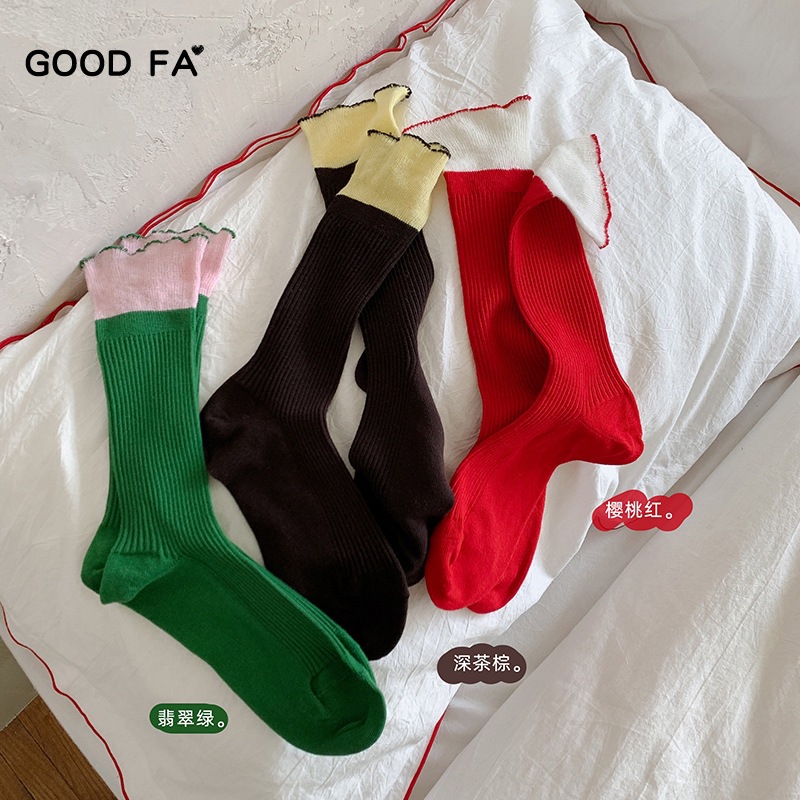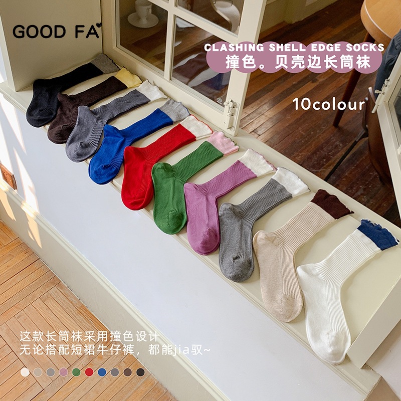 2025年春夏新款 彩色撞色翻口堆堆袜 贝壳边 中筒袜女袜