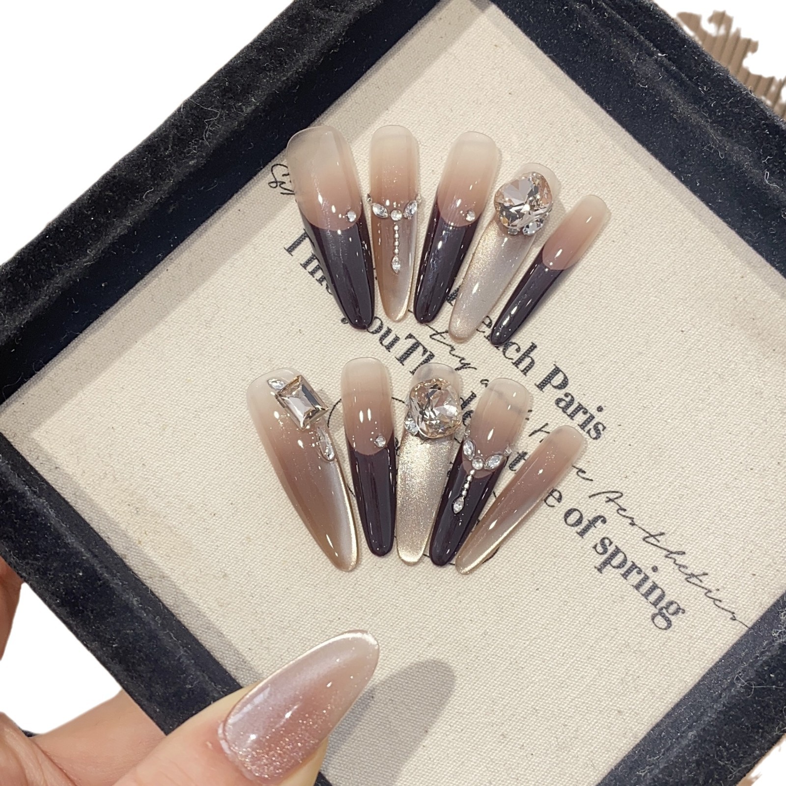 一只顾美甲 秋冬显白美拉德宽光猫眼黑咖色法式链条轻氧穿戴甲