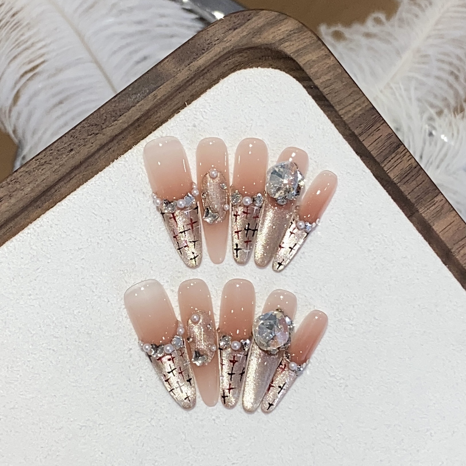 纯手工穿戴甲粉猫眼清透感k9钻美甲可拆卸重复使用清透感光疗甲