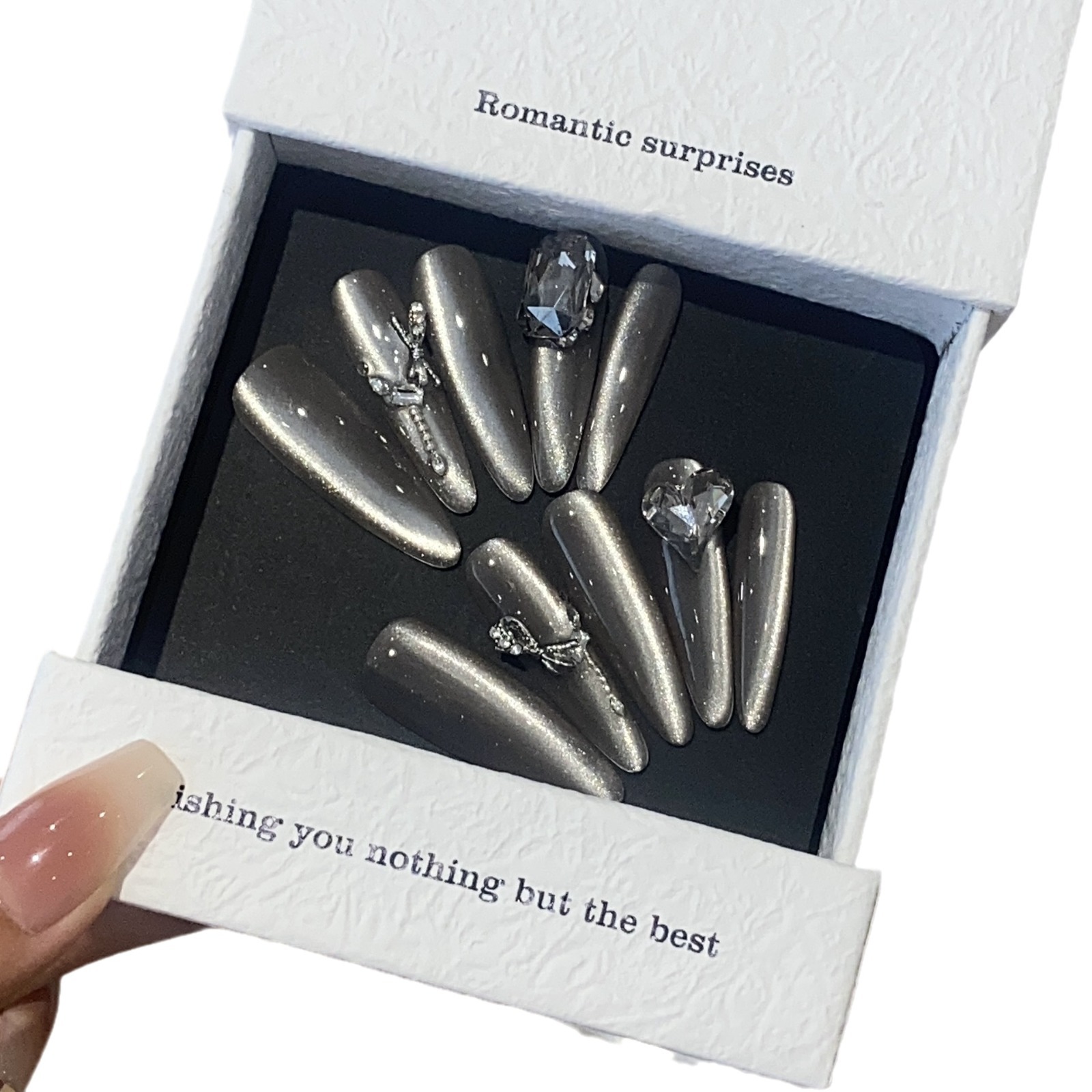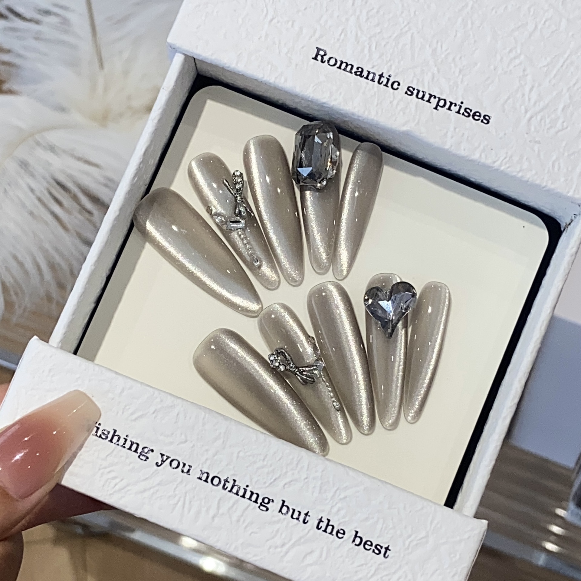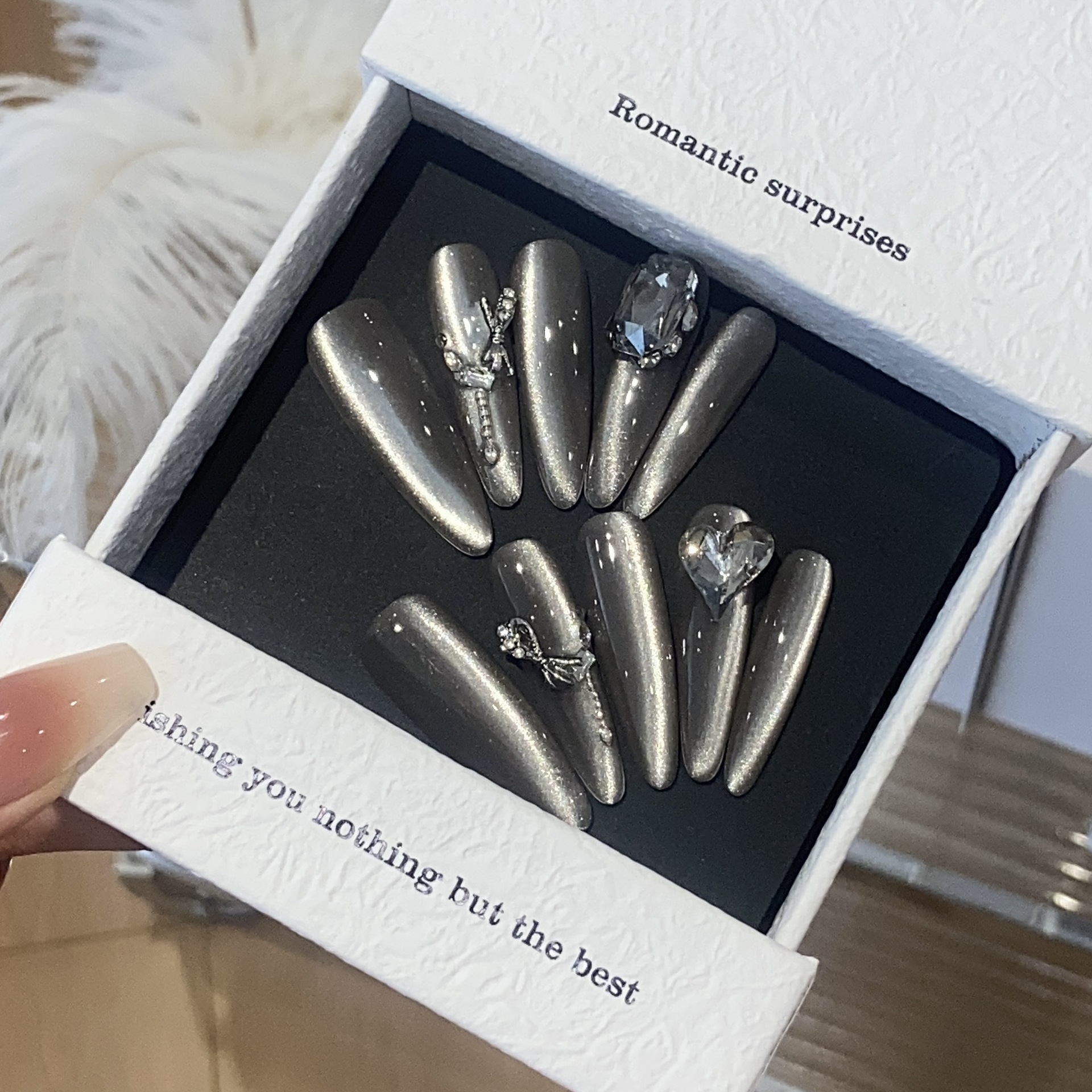 一只顾美甲 玻璃珠感侧光猫眼合金蝴蝶结歪心钻派对贴片穿戴甲片