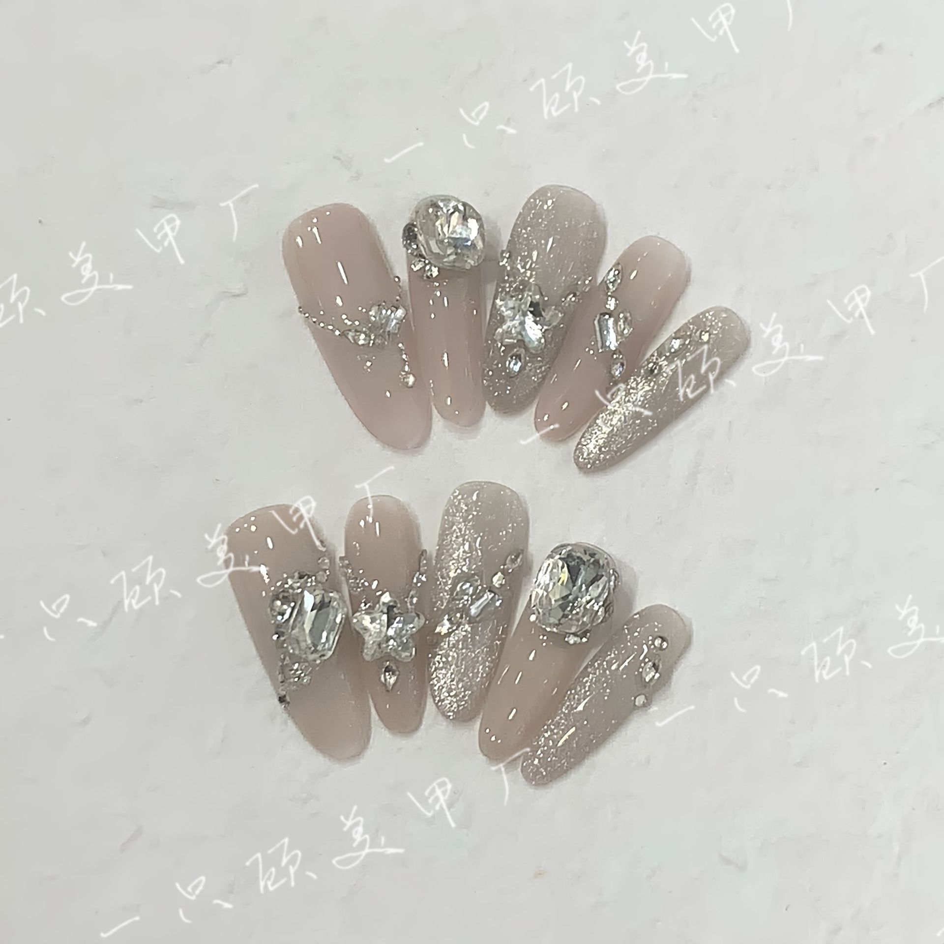 一只顾美甲厂【Y】原创实拍爆闪亮晶晶猫眼斜边花花钻 花海指甲贴