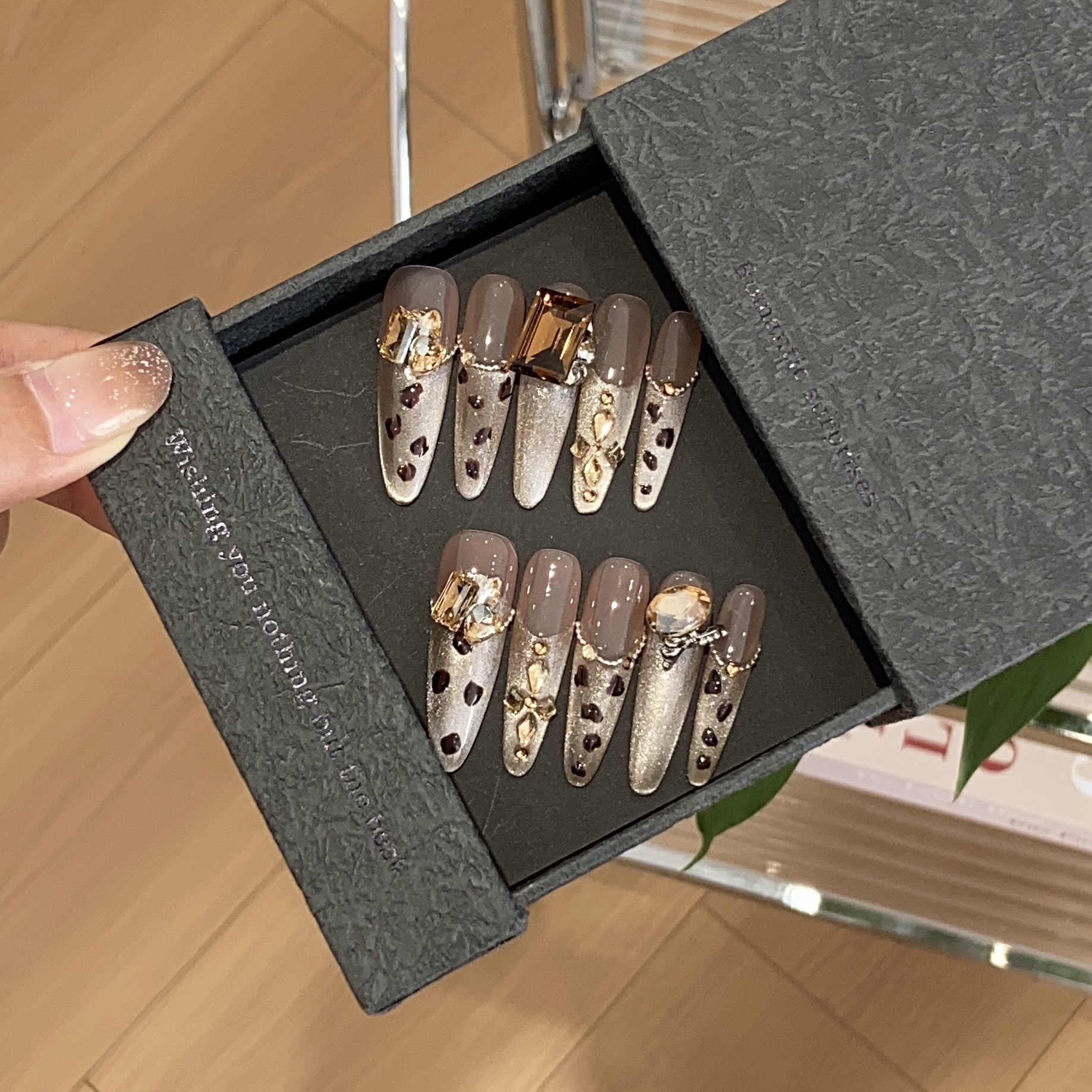 一只顾美甲 秋冬豹纹爆闪法式合金链条堆堆大方钻虞美人穿戴甲片