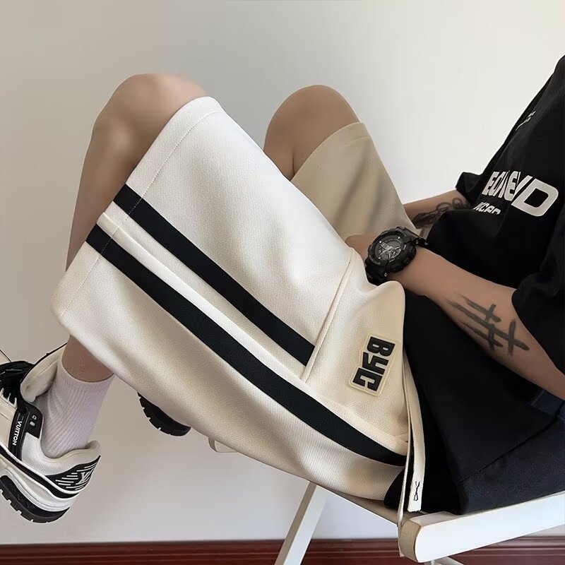 黑白撞色拼接短裤男夏季潮牌美式篮球青少年运动裤宽松直筒五分裤