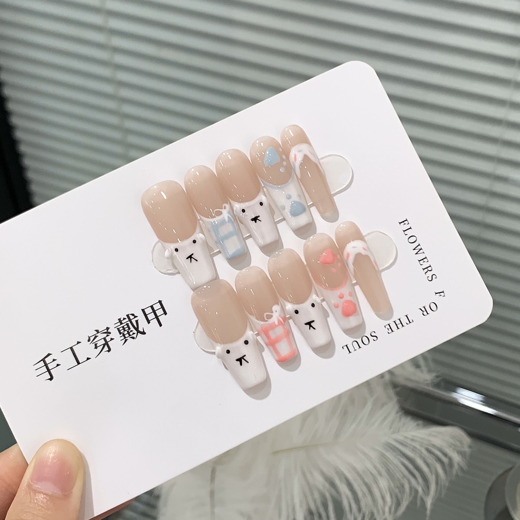 一只顾美甲厂 纯手绘卡通猫爪甜美少女心立体狗狗日常可拆卸指甲