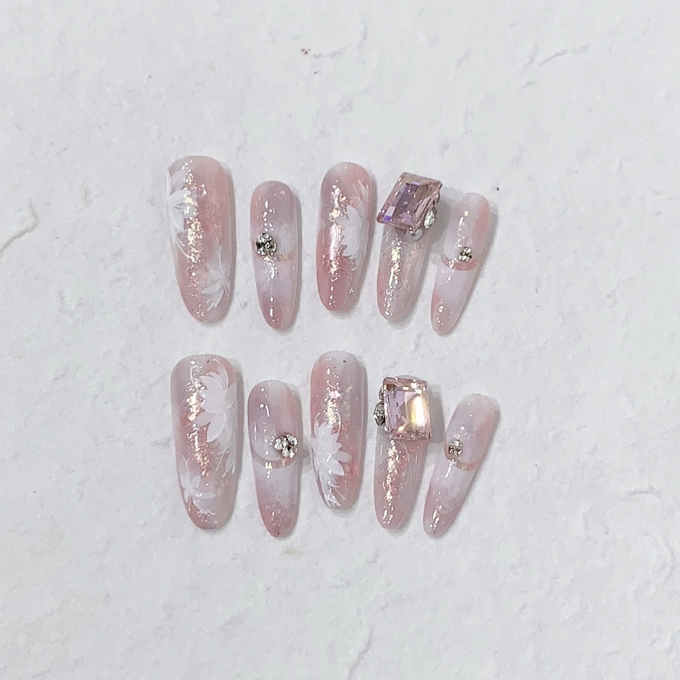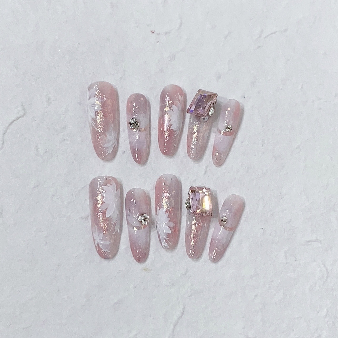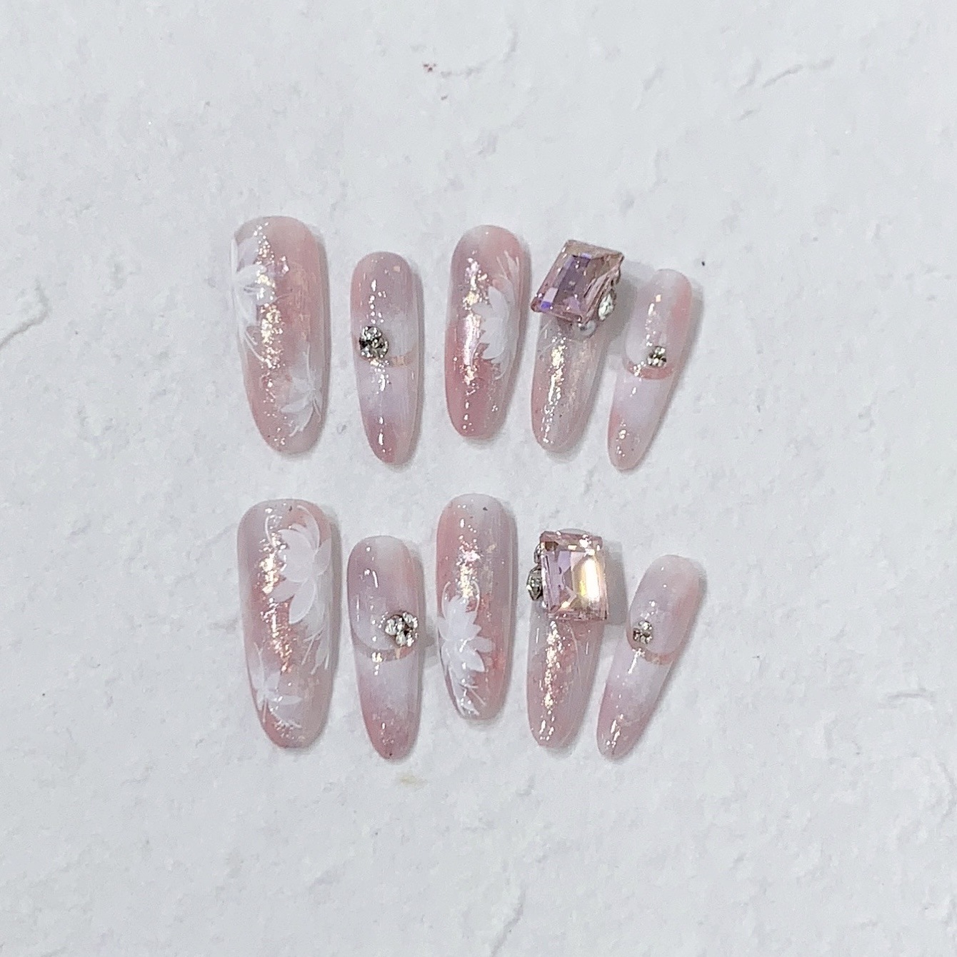 一只顾美甲厂【Y】原创实拍手绘渐变穿戴甲立体浮雕贴纸落樱