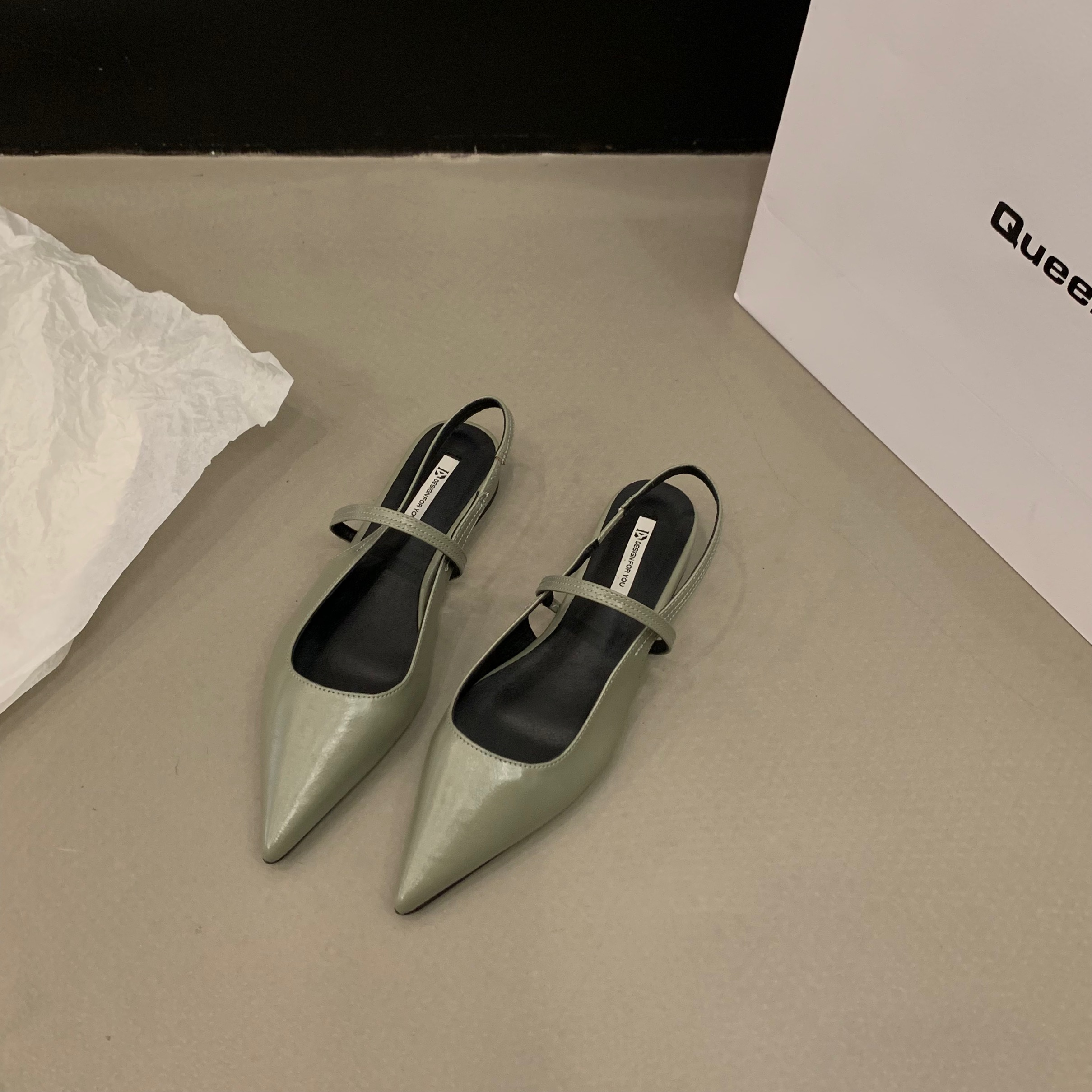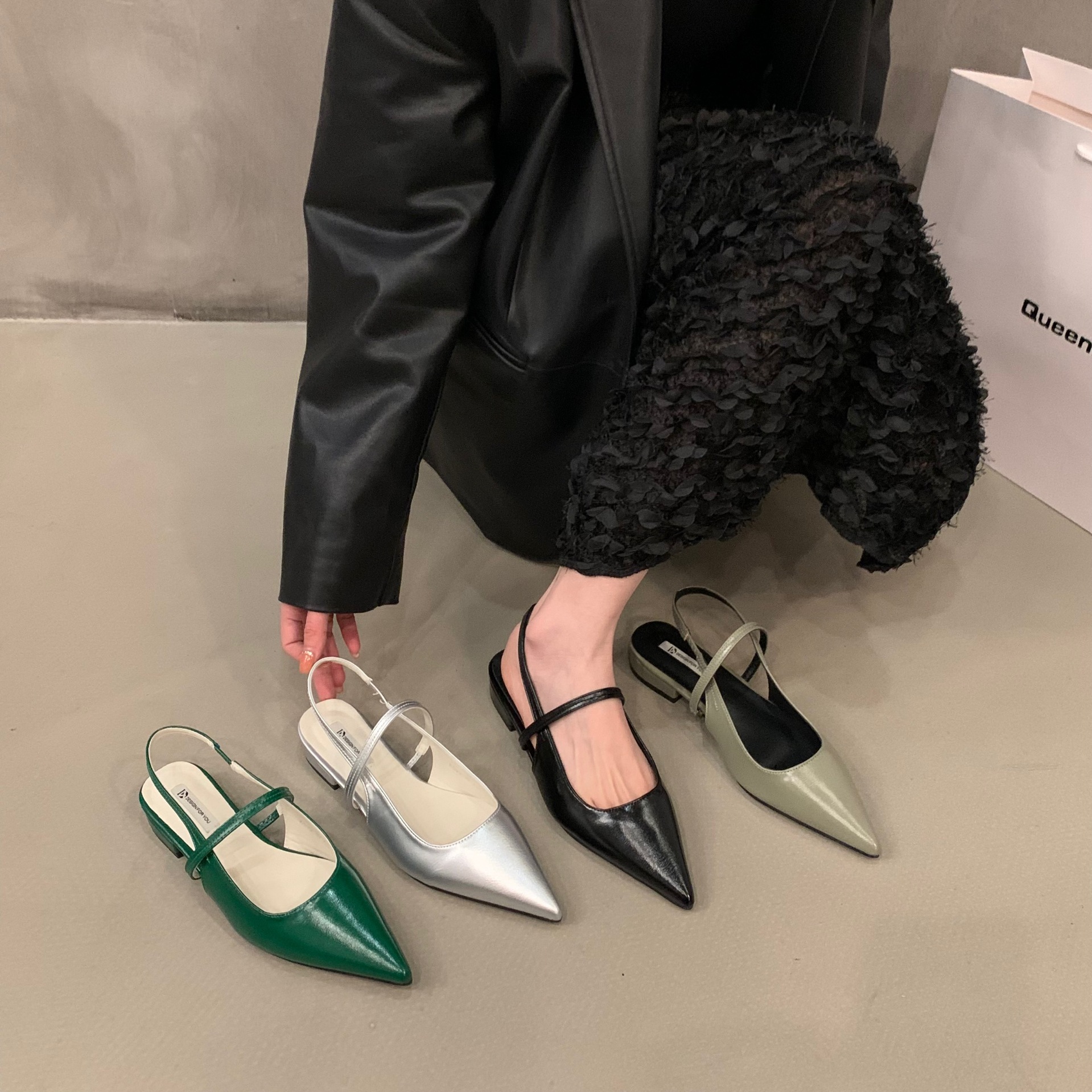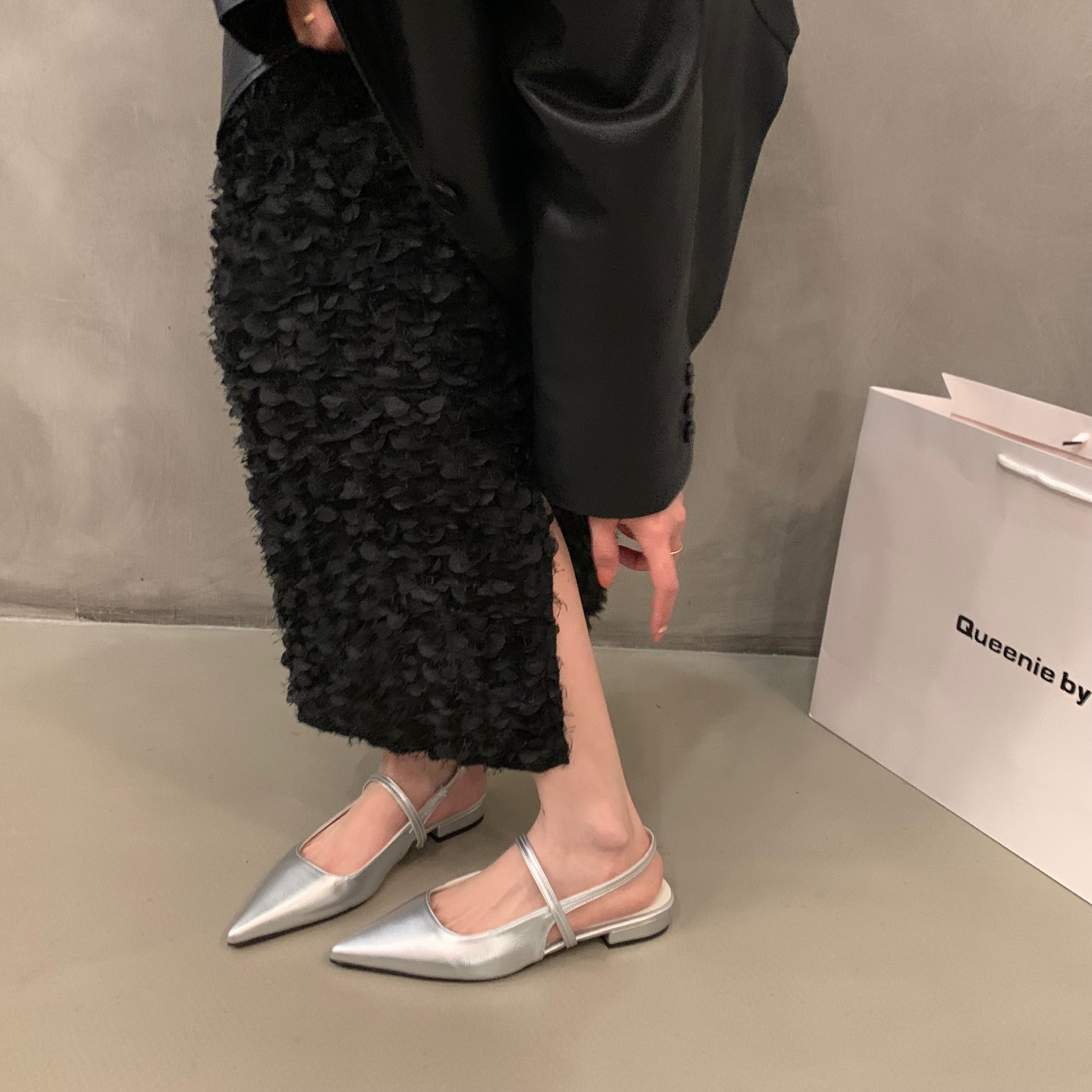 法式平底浅口包头凉鞋仙女鞋子新款春夏季尖头银色玛丽珍单鞋