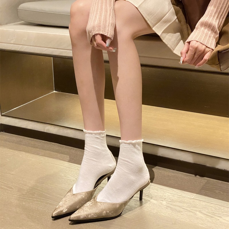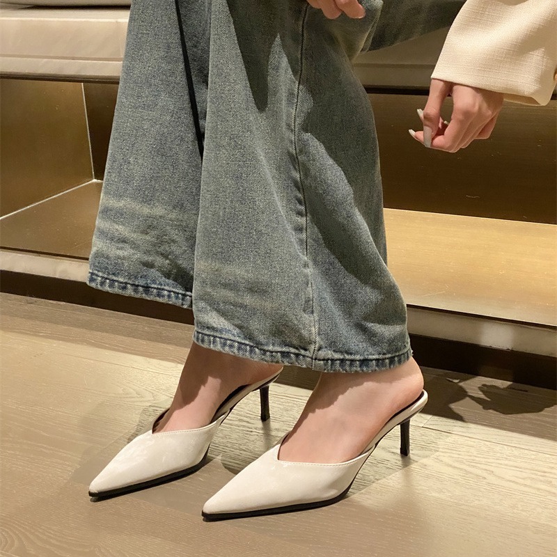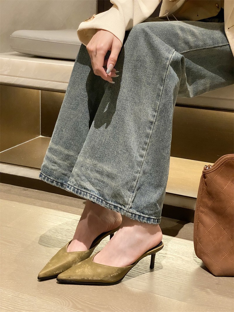 法式小众设计感尖头绒面高跟鞋女夏新款细跟配裙子包头凉鞋