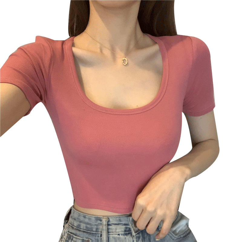 打底衫女夏季新款短袖T恤女装韩版修身露脐学生短款上衣服女