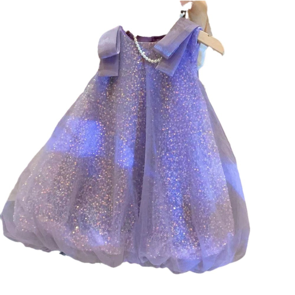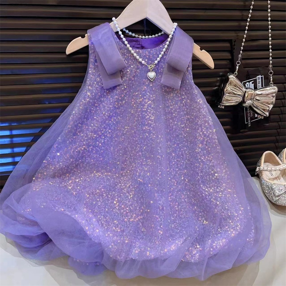 新品儿童连衣裙2025夏季新款女童公主裙花苞裙亮片中小童网纱裙
