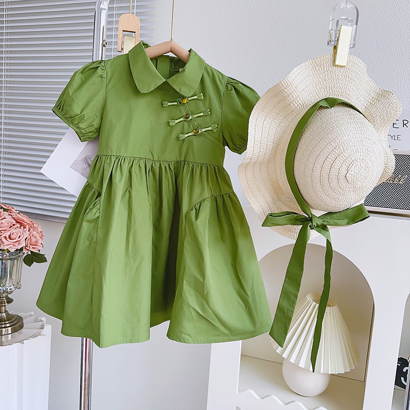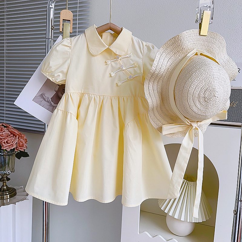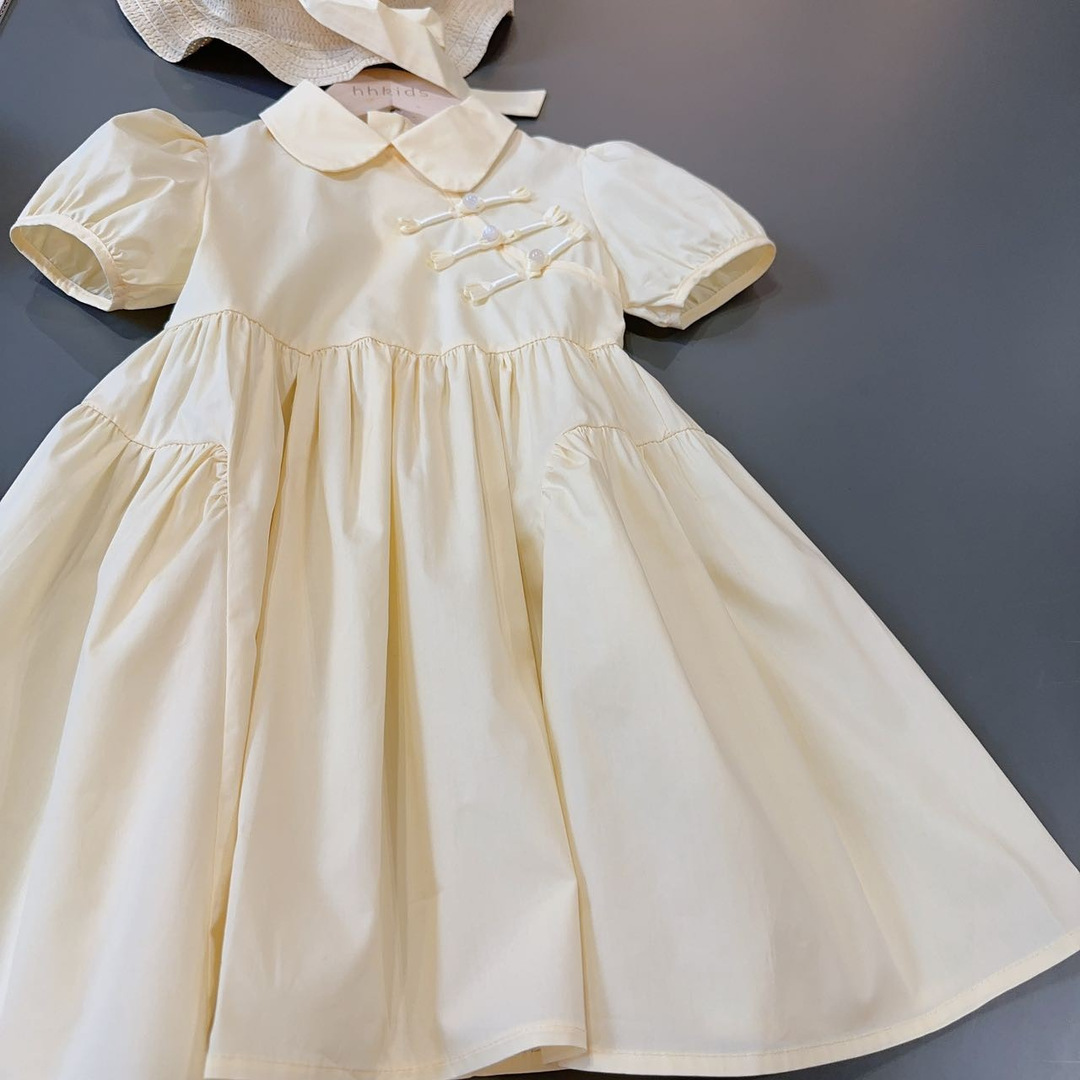 新品女童连衣裙夏季2025新款泡泡袖长裙国风盘扣中小童超仙裙子