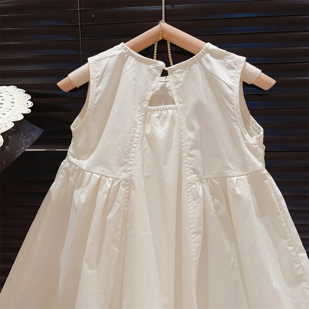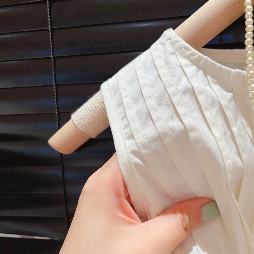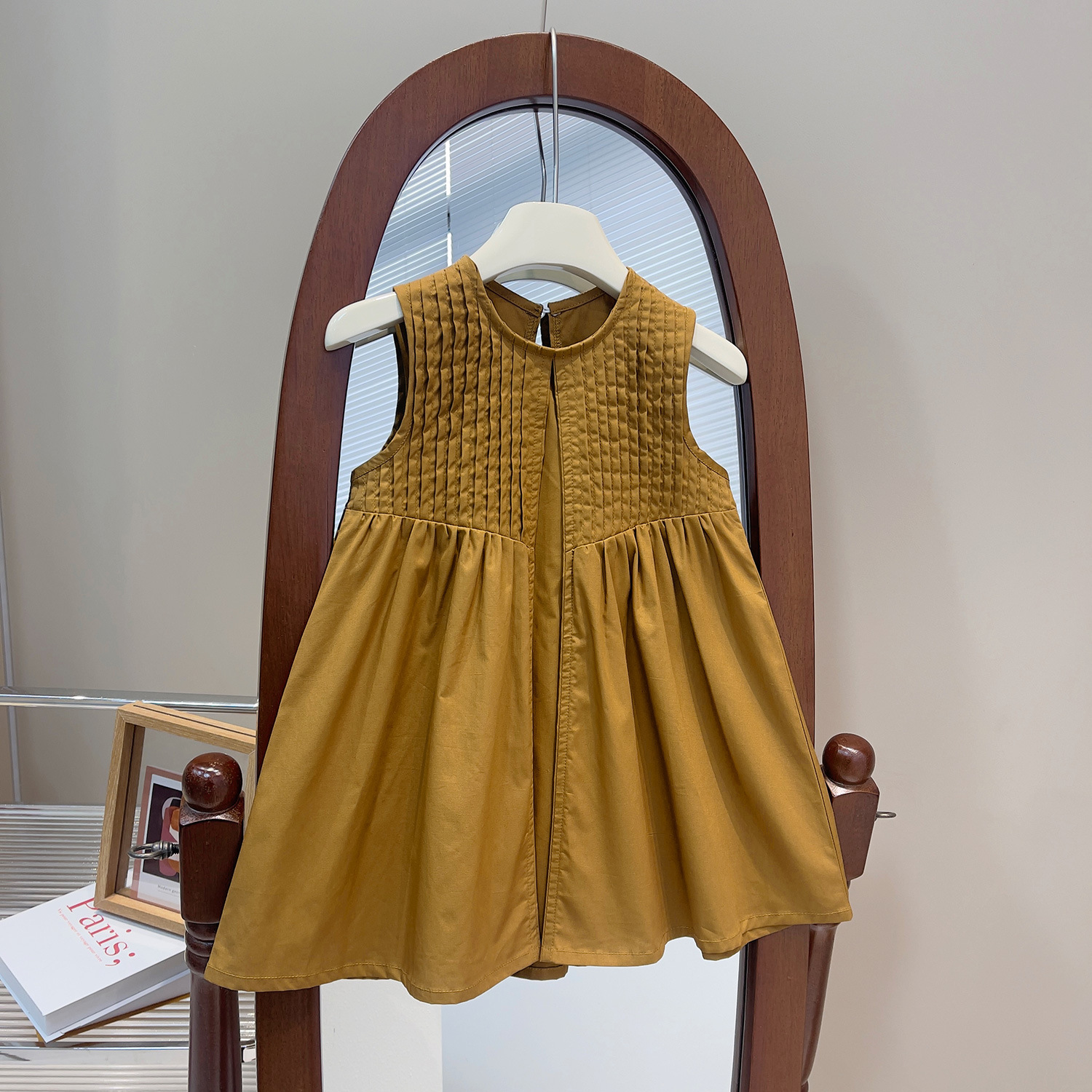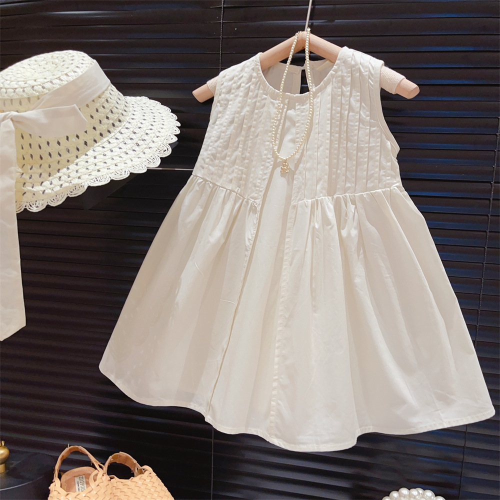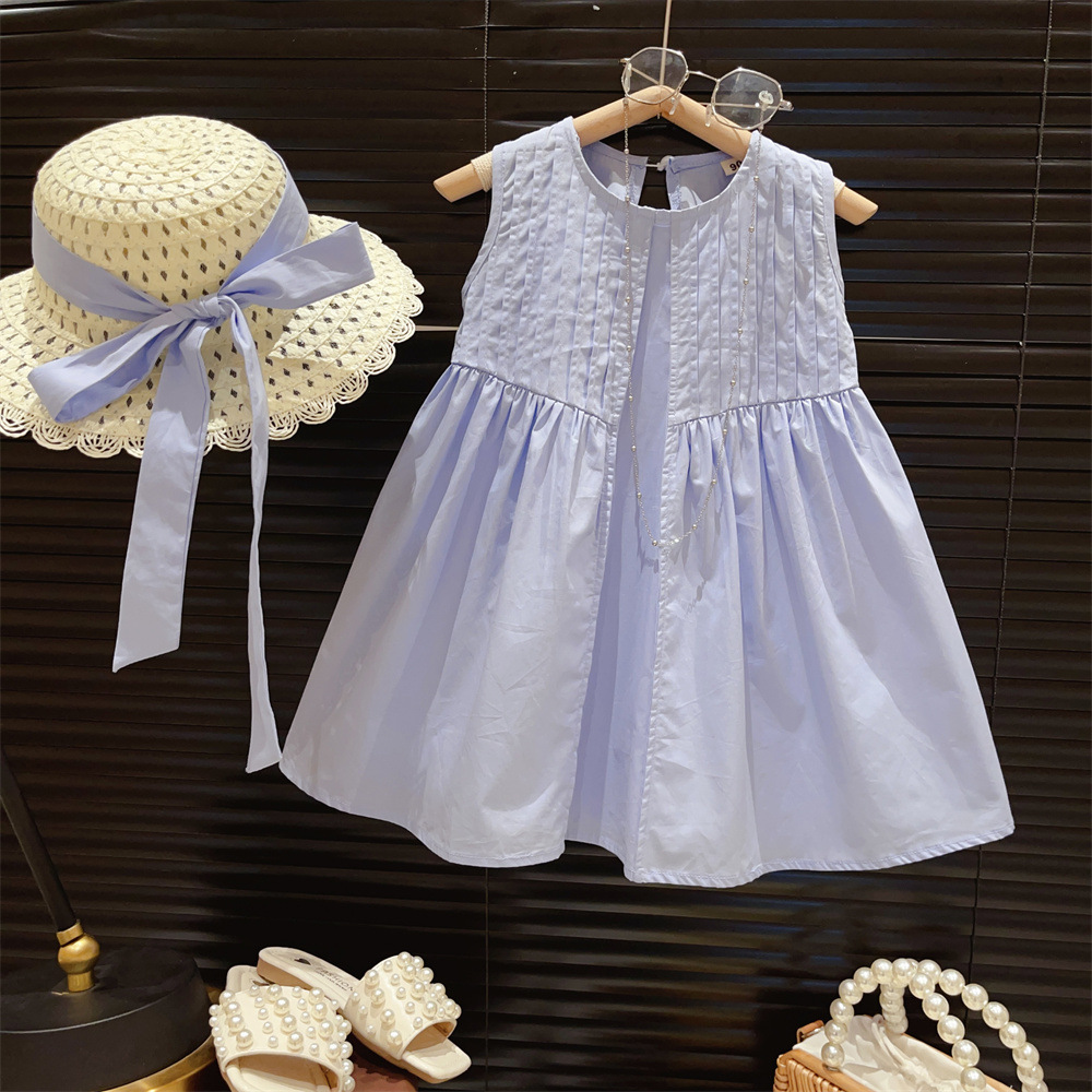 新品女童洋气压褶收腰纯色气质公主背心裙送帽子2025夏装裙子