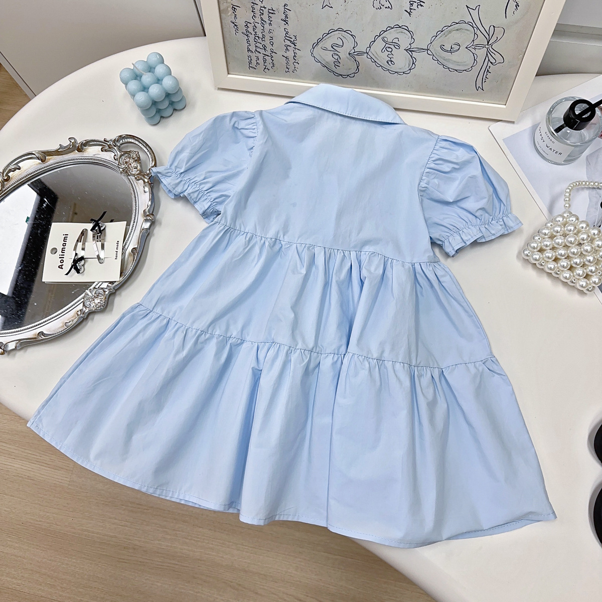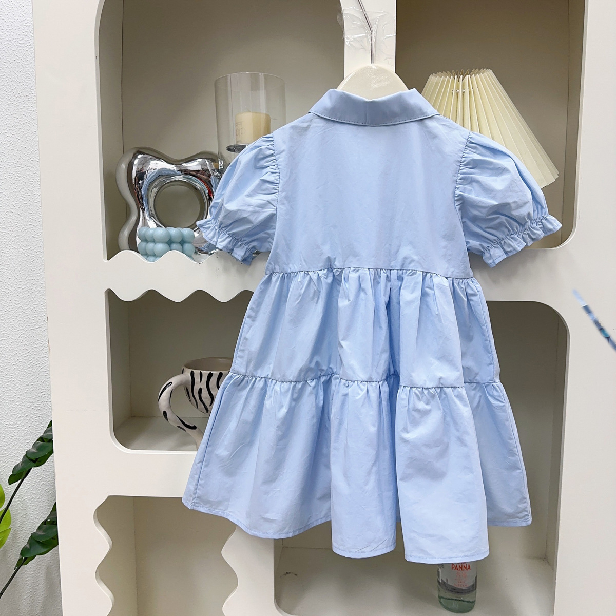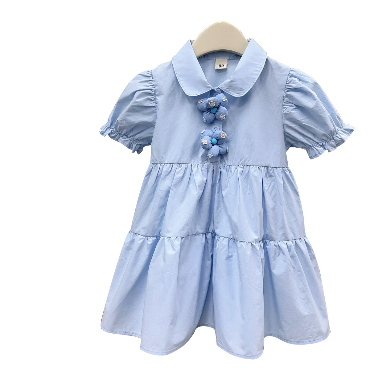 新品2025女童韩版连衣裙夏季新款小女孩立体花朵短袖衬衫裙连衣裙