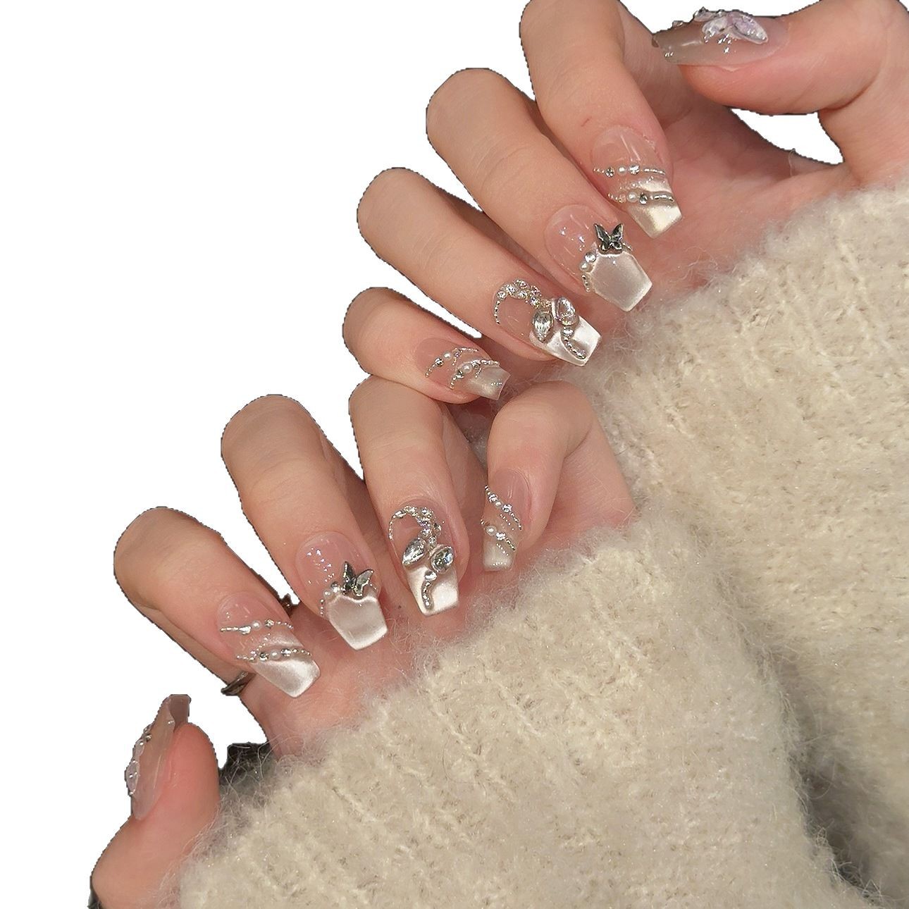 【蝶春蛇】艺禾高品爆款纯手工穿戴甲绵密猫眼蝴蝶高级美甲贴片
