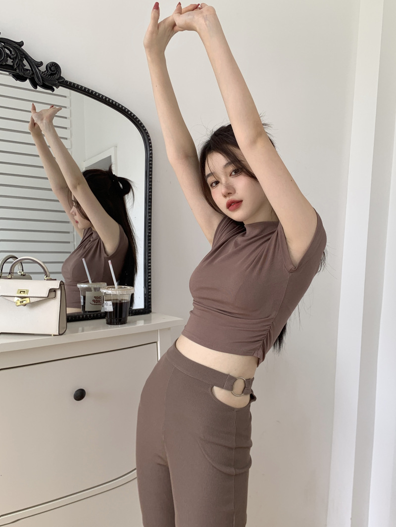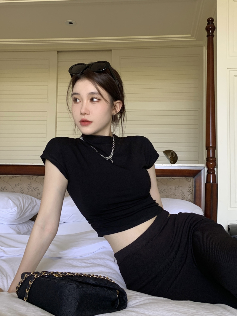 辣妹半高领短袖T恤女夏季设计感修身性感修身内搭上衣打底衫