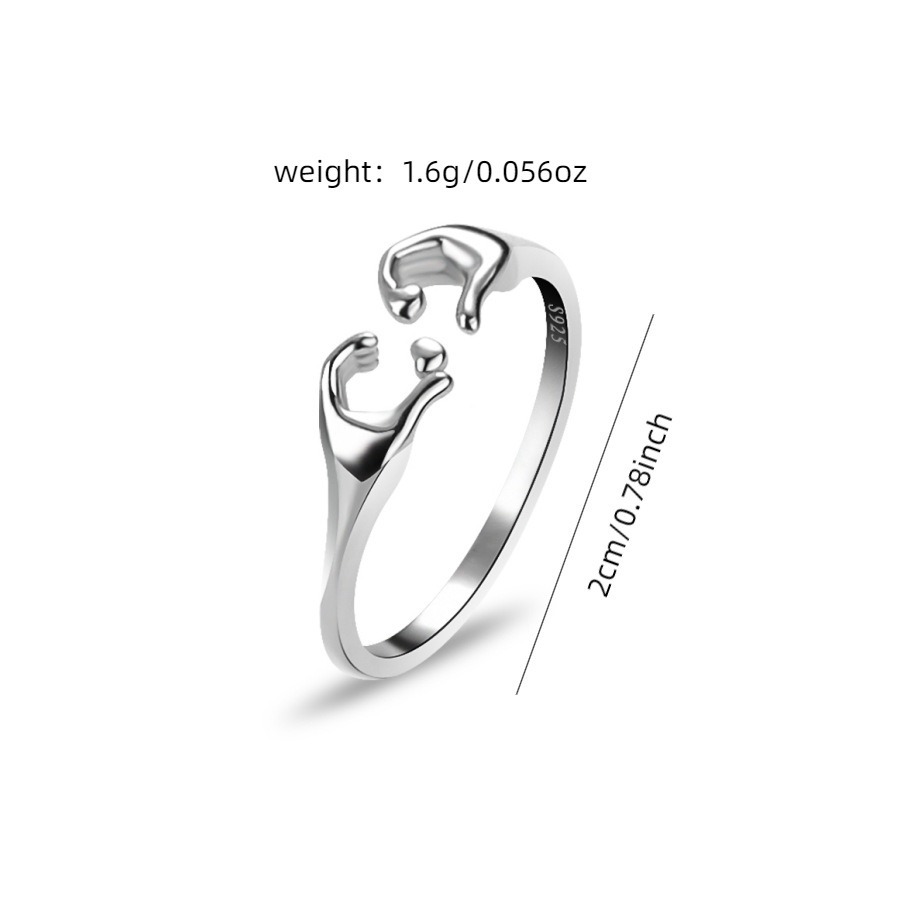 S925纯银 时尚个性简约风 男女通用双手比心 低过敏开口戒指