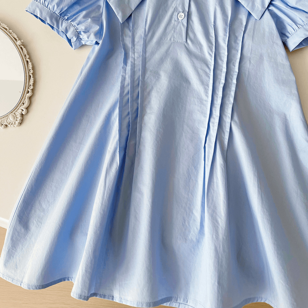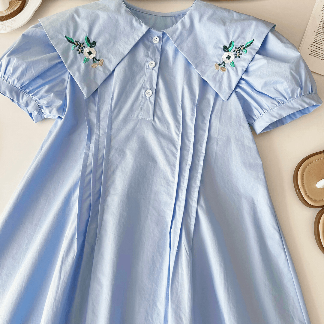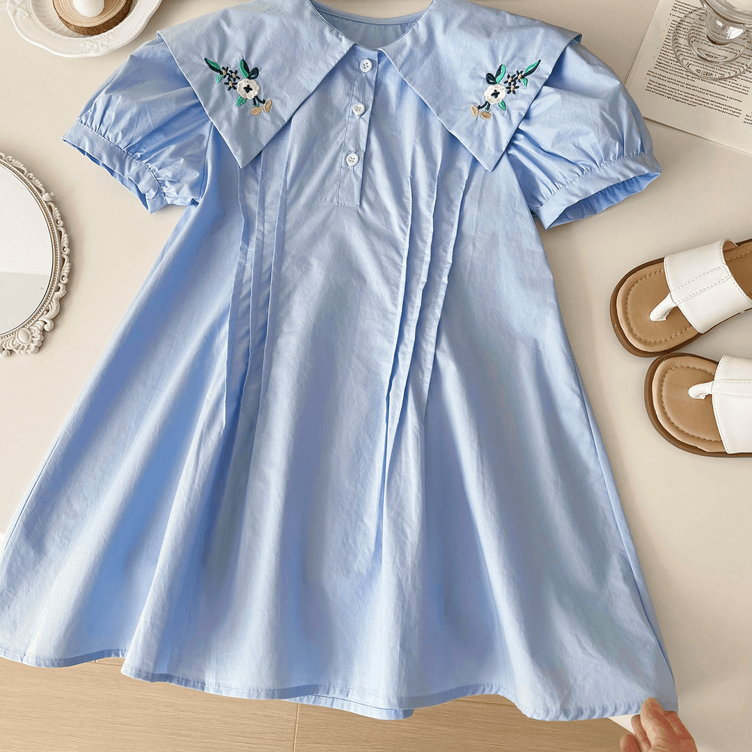 新品女童夏季短袖连衣裙2025新款翻领碎花中小童刺绣翻领连衣裙